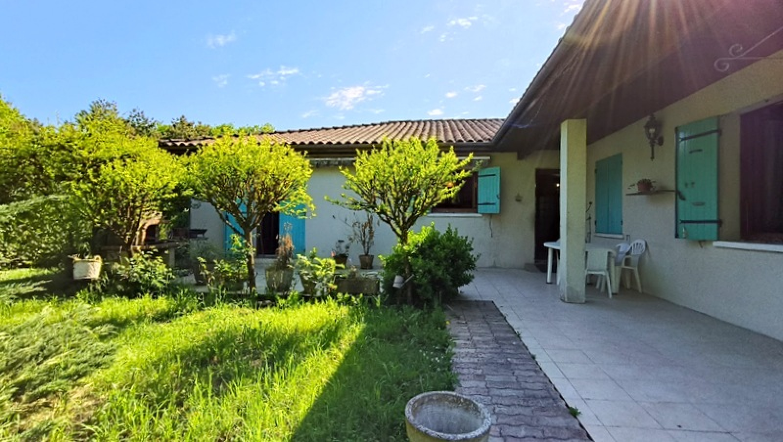 "Un vaste jardin arboré, entièrement clos, offrant un espace idéal pour accueillir vos animaux (chevaux, etc.) ou pour réaliser tous vos projets, comme un potager ou un espace de loisirs. Le terrain est doté d’un portail et d’un portillon, garantissant confort et sécurité."