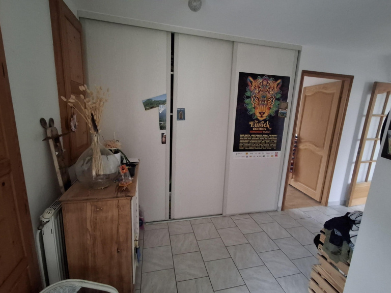 Il se compose d’une entrée avec placard, d’une cuisine aménagée accompagnée d’un cellier, d’un séjour lumineux avec rangement intégré, ainsi que d’un dégagement desservant trois chambres, toutes dotées de placards. La salle de bain meublée dispose d’une baignoire et d’une douche, complétée par des toilettes indépendants.