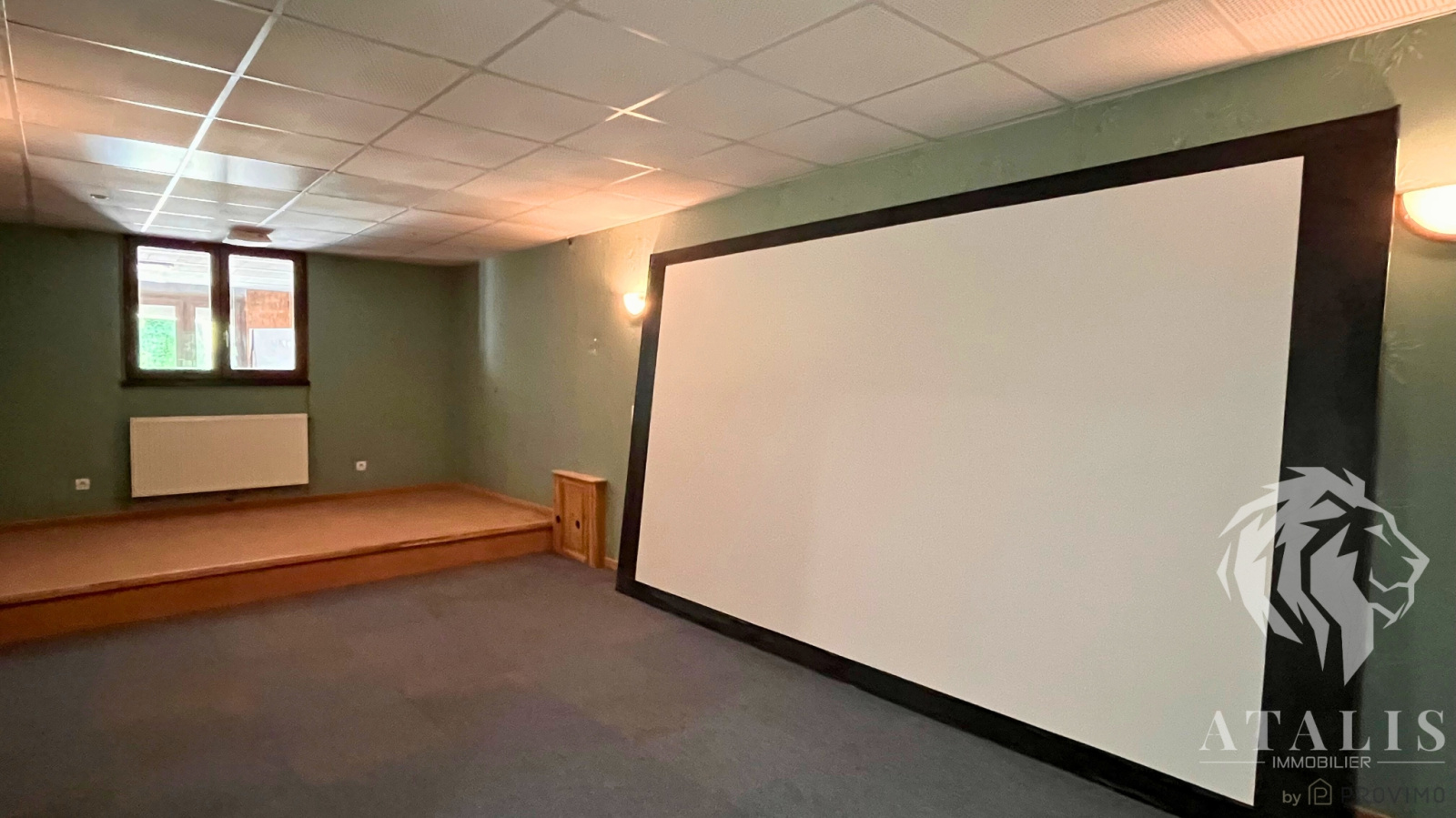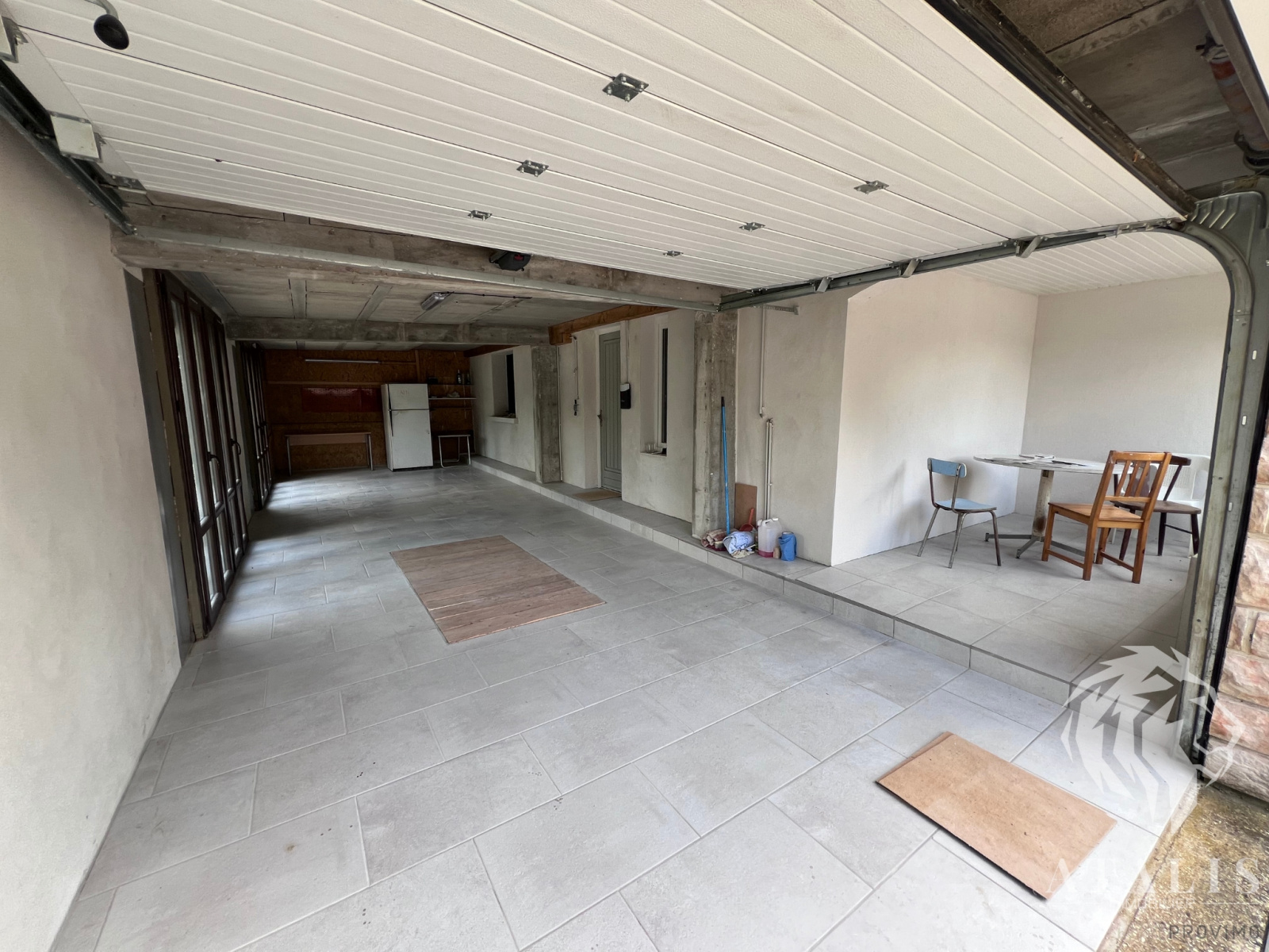 une entrée avec WC indépendant, une chambre, une pièce cinéma, une grande chambre avec salle d'eau. Un grand garage de plus de 40 m² carrelé avec fenêtres en double vitrage.