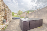 A l'extérieur : une terrasse, un jardin clos de murs et un garage avec porte motorisée.