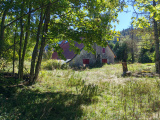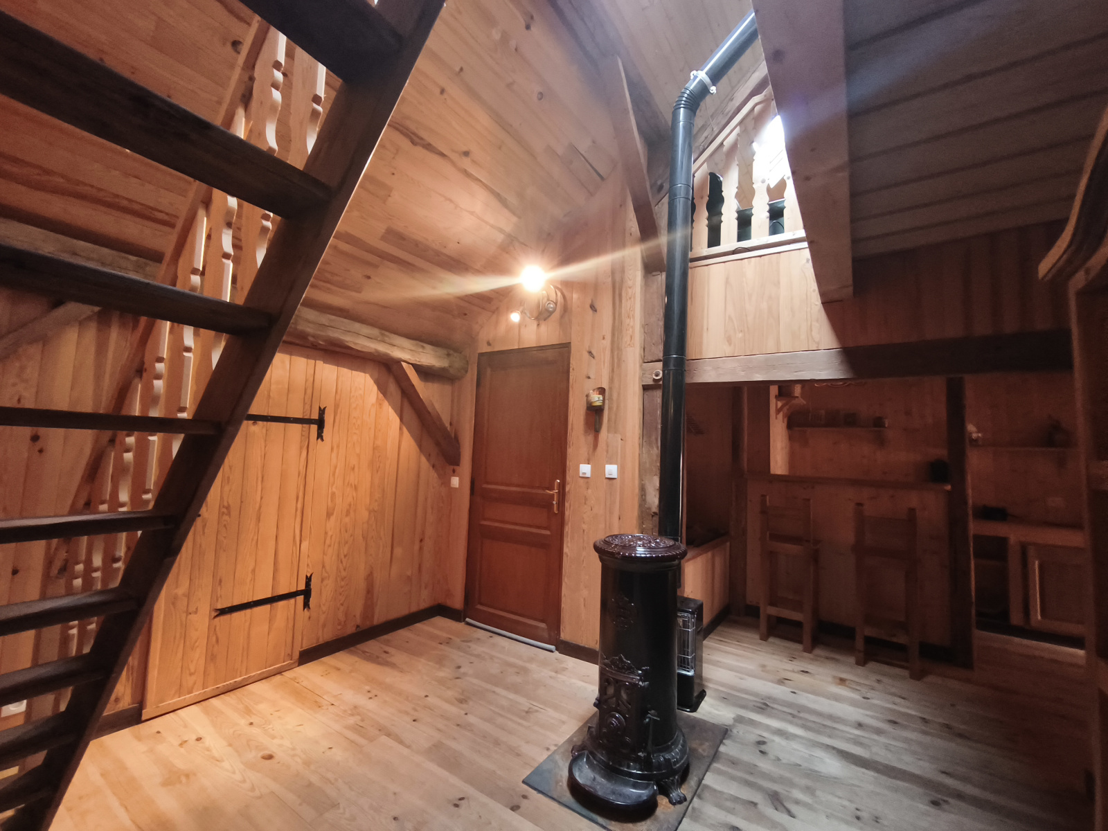 - un 1er logement avec cuisine équipée, salon/salle à manger avec 2 ouvertures à 3 vantaux et poele à bois, 2 chambres, WC avec point d'eau + 2 pièces aménagés sous toiture (espace nuit d'appoint)