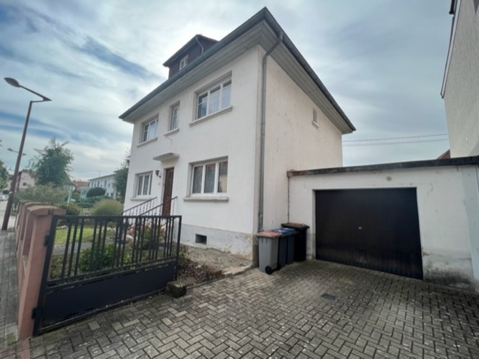 Belle maison de 115m² au centre de Lauterbourg avec un terrain d'environ 365m². Cette maison sur 2 niveaux avec cave et combles d'environ 36m² aménageables se compose: au rez de chaussée d'une cuisine équipée, d'un séjour, d'une salle à manger, 1 chambre, un WC, l e couloir et une sortie sur la terrasse couverte. Le premier étage se compose de 3 chambres, cuisine, palier, salle de bains avec WC. Chauffage au gaz de ville, double vitrage en RDC, simple vitrage à l'étage. Le terrain clôturé se compose d'un jardin, un parking et un garage à l'avant, un jardin sur le côté et l'arrière ainsi qu'une dépendance, une grande terrasse couverte. La maison en bon état d'entretien, nécessite cependant quelques rafraîchissements. Très bonne situation, proche des commodités locales, de la gare, de la frontière allemande et de l'autoroute.