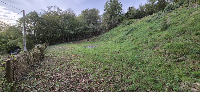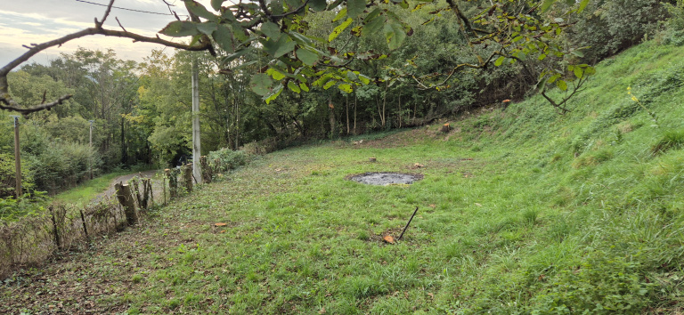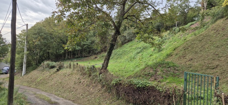 - Topographie : Terrain pentu mais plat à l'emplacement prévu pour la construction.