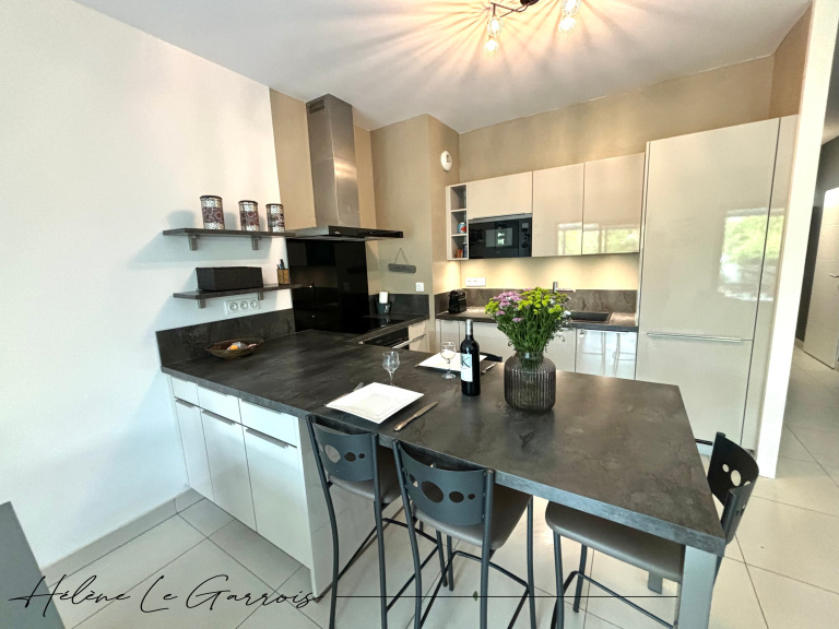 Elle se compose d'une grande pièce de vie avec cuisine équipée ouvrant sur un jardin avec pergola.