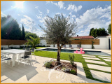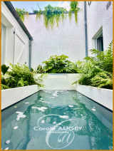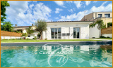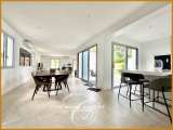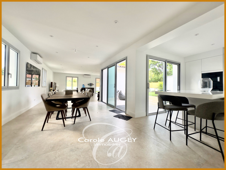 Dès l’entrée, l’ambiance vous transporte : volumes remarquables, lignes épurées et finitions haut de gamme. Le vaste séjour de plus de 81 m² s’ouvre sur une cuisine ouverte au design raffiné, équipée de plans en Corian, d’appareils électroménagers dernière génération et agrémentée d’une cheminée contemporaine qui insuffle chaleur et convivialité. De larges baies vitrées effaçables créent une parfaite continuité avec l’extérieur, révélant un écrin de verdure aux essences variées, aux senteurs méridionales, complété par une piscine avec sa douche attenante, un vaste patio couvert ainsi qu’un second patio, plus confidentiel, dédié à la suite du rez-de-chaussée.