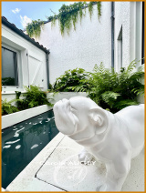 Et la magie continue avec un troisième patio, véritable havre de sérénité, où une fontaine délicate offre une douce mélodie au milieu de la végétation. Ce cocon s’ouvre par une élégante porte-fenêtre sur un bureau lumineux, idéal pour travailler en toute tranquillité.