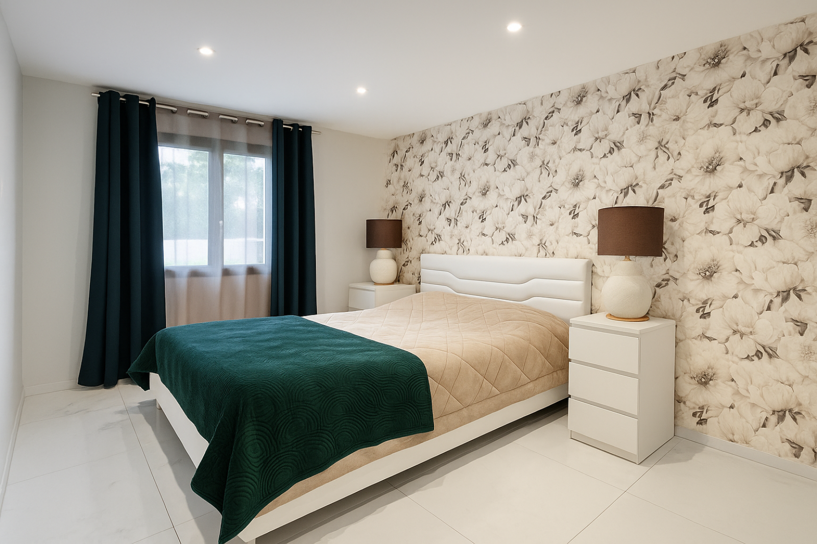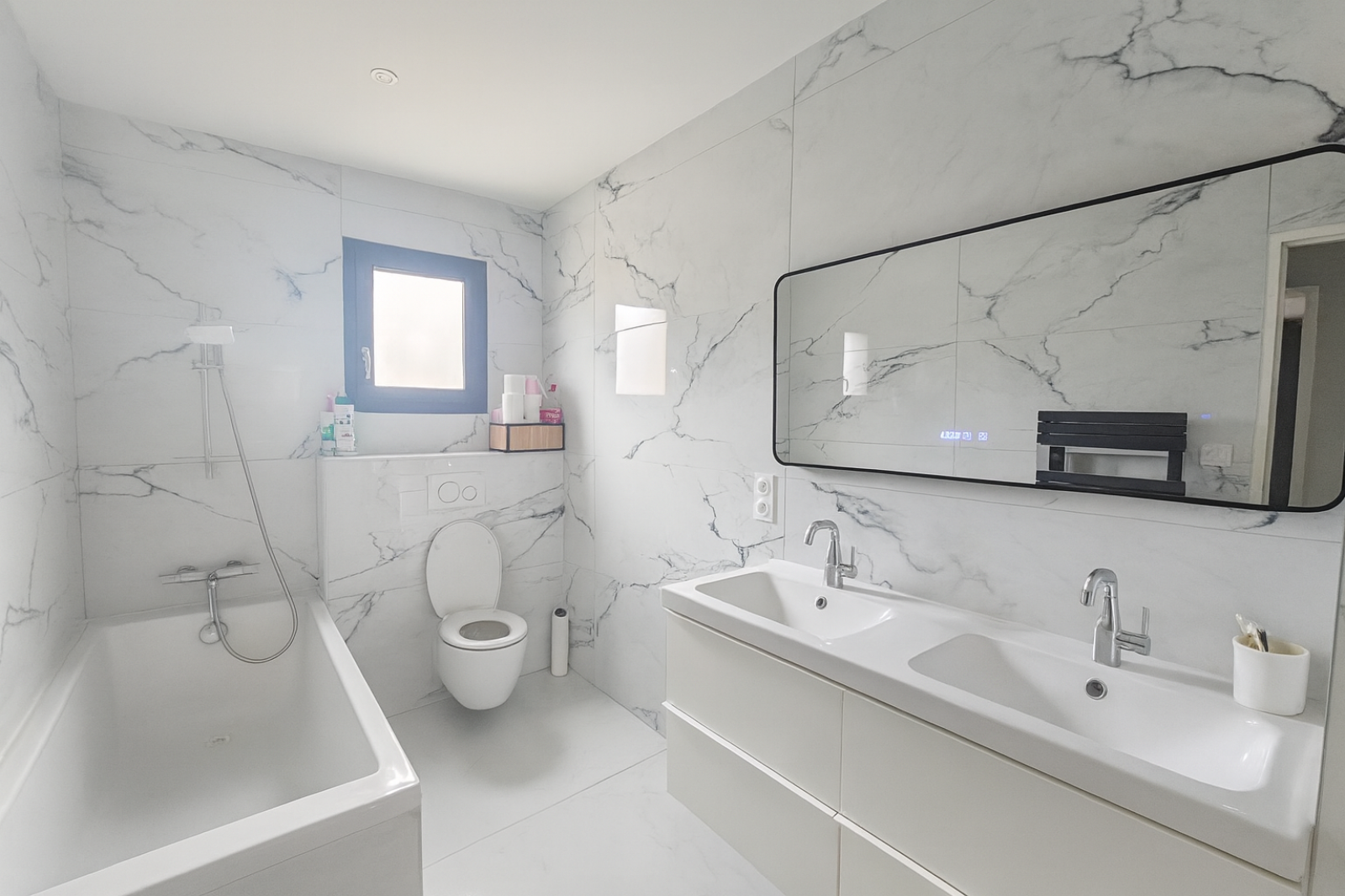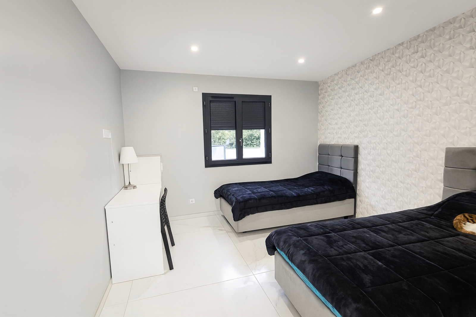 Elle offre 3 grandes chambres dont 1 suite parentale de 20m2 avec salle d'eau privée et dressing et 2 chambres de 15 et 18m2, toutes équipées de dressing avec une salle de bain familiale.
