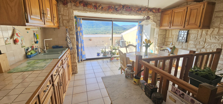 A Bagnols en Forêt, au cœur du village, proche toutes commodités, appartement duplex 3 pièces de 75m² au sol, (60,27 loi carrez), avec une terrasse de 16m² offrant une vue panoramique exceptionnelle sur les colline environnantes.