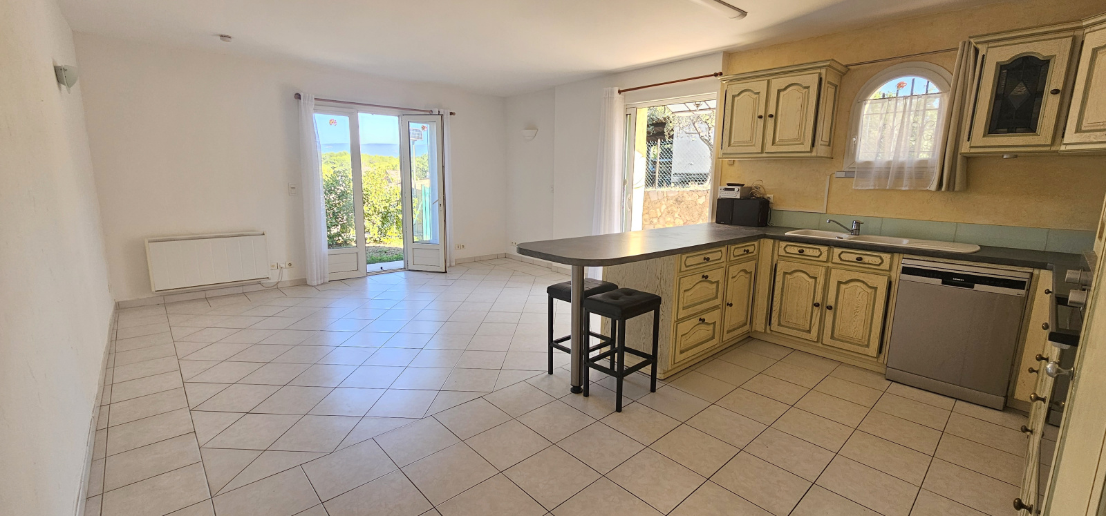 A Bagnols en Forêt, au calme, libre de toute occupation, proche toutes commodités, dans une petite copropriété de 2008 composée de 4 logements, appartement en rez-de jardin, 72,22m² loi Carrez, avec la jouissance exclusive de 104m² d'extérieur avec 2 jardinets et une terrasse, 2 parkings privatifs côté entrée complètent l'ensemble.