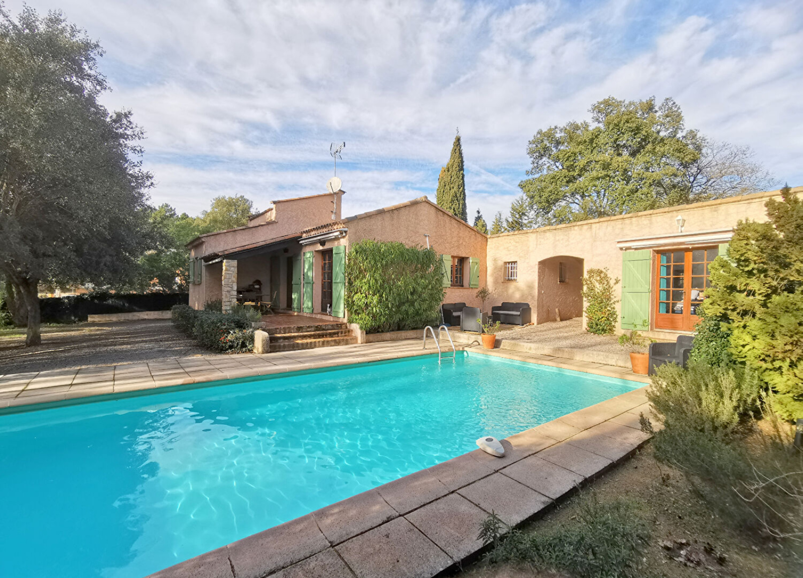A Bagnols en Forêt dans une environnement résidentiel aéré au calme , avec une jolie vue sur le Blavet à travers les arbres, aucun vis à vis, villa de plain-pied construite en 1972 sur un terrain de 2433m² et agrandie en 1980 d'une annexe indépendante. La partie principale est composée d'un séjour de 32 m² avec cheminée, ouvrant sur une terrasse en partie couverte, une cuisine indépendante aménagée pouvant être ouverte sur le séjour, 2 chambres 11m² et 13m² , une salle de bains avec WC, et une pièce de 7m² dans le grenier accessible par escalier escamotable. L'annexe indépendante de 18 m² est composée d'une belle chambre avec salle de bains et WC et pourrait être transformée en Studio. A l'extérieur sur ce magnifique terrain entièrement clôturé, vous trouverez une piscine 8x4 en très bon état , un garage de 18m² et un chalet. Ce village perché du canton de Fayence, le plus proche de la ville et de la mer, à 18km de Fréjus, à 15mn de l'accès de l'A8, 50mn de l'aéroport de Nice et proches de plusieurs golfs dont le fameux Golf de terre Blanche de Tourrettes à 10mn, offre toutes les commodités ; commerces dont un supermarché, pharmacie, bureau de poste, plusieurs restaurants sur une jolie place, une école maternelle et primaire et une maison médicale. ' Les informations sur les risques auxquels ce bien est exposé sont disponibles sur le site Géorisques : www.georisques.gouv.fr