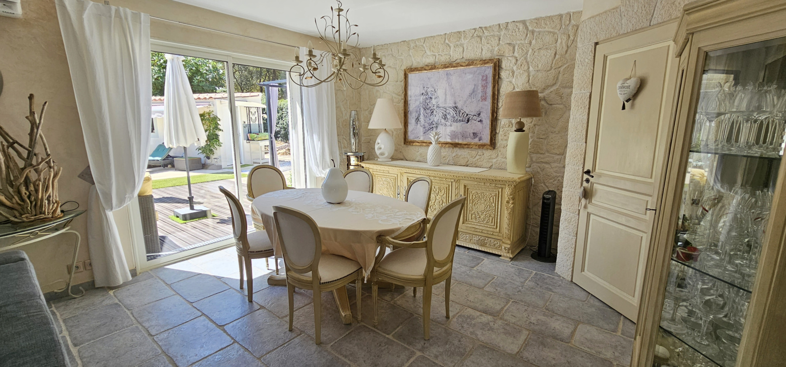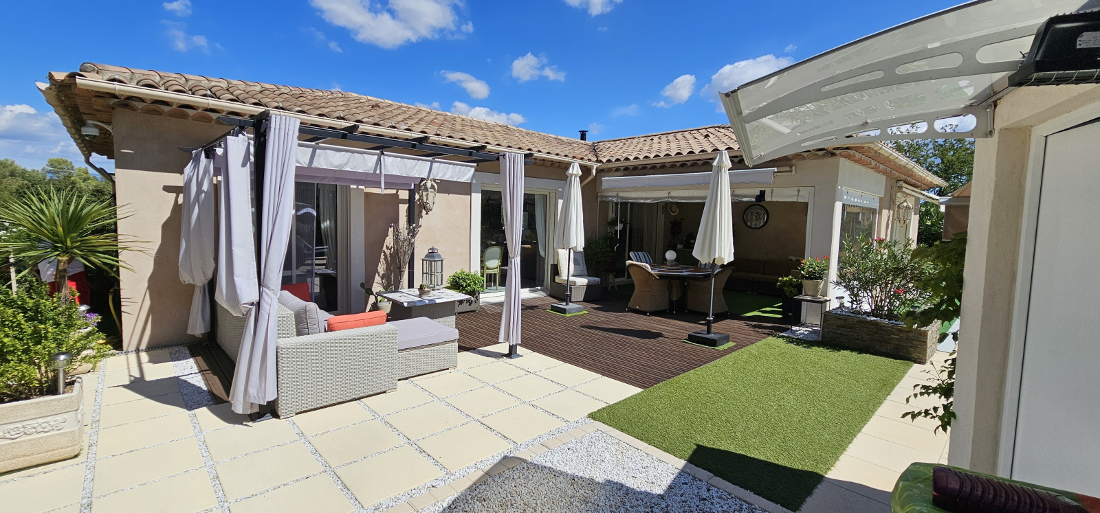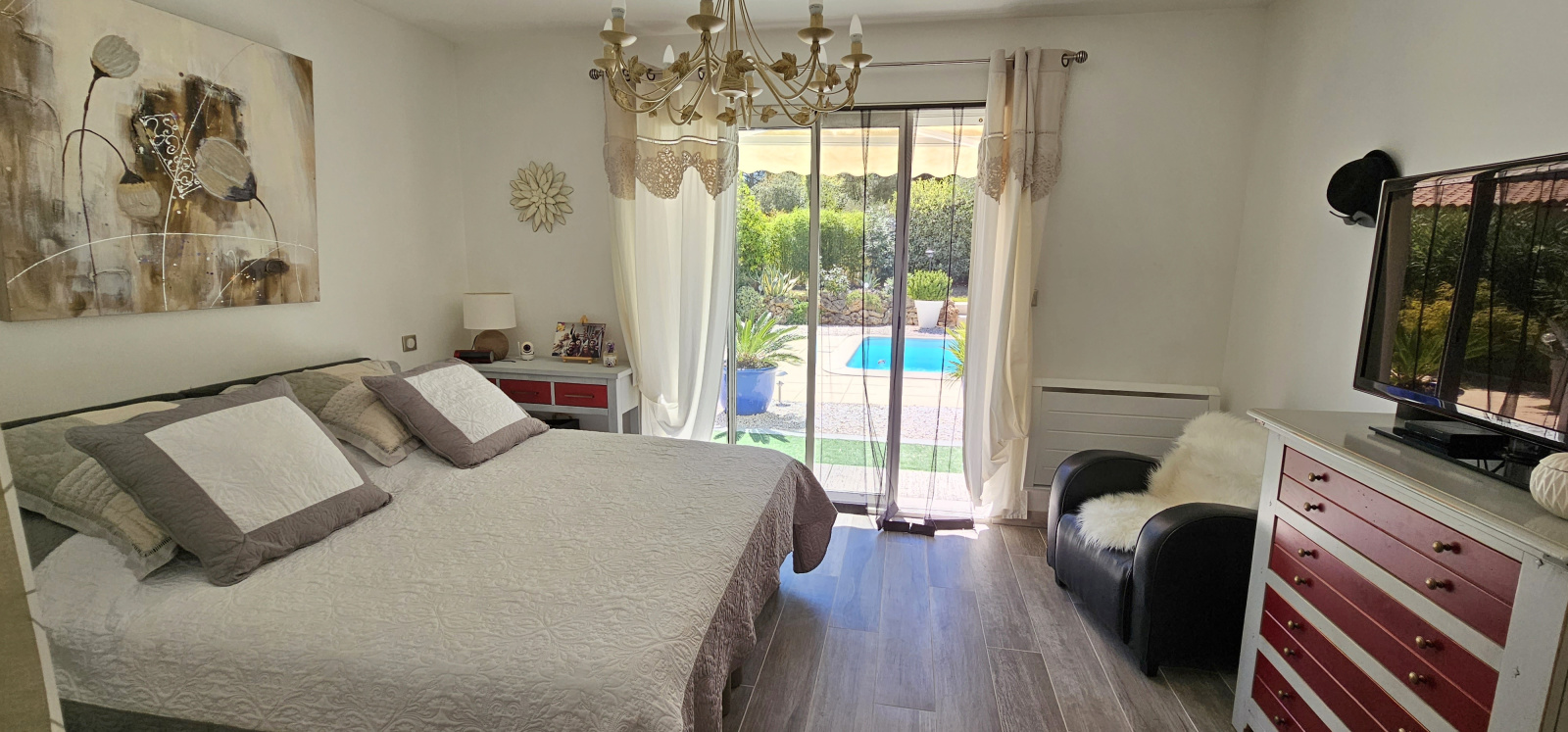 A Bagnols en Forêt, proche toutes commodités, sans vis à vis, en position dominante sur un terrain de 916m² entèrement aménagé, paysagé et clos.