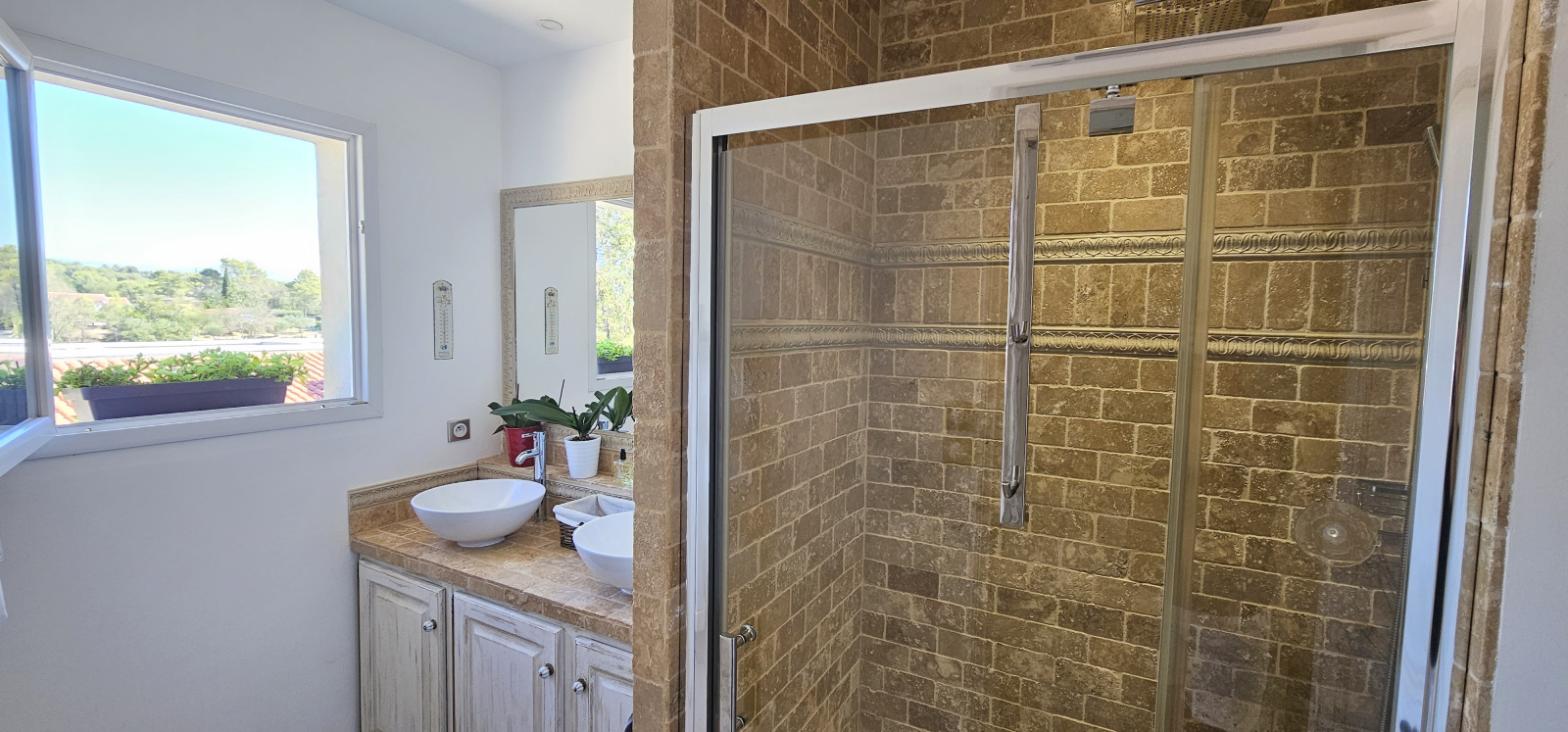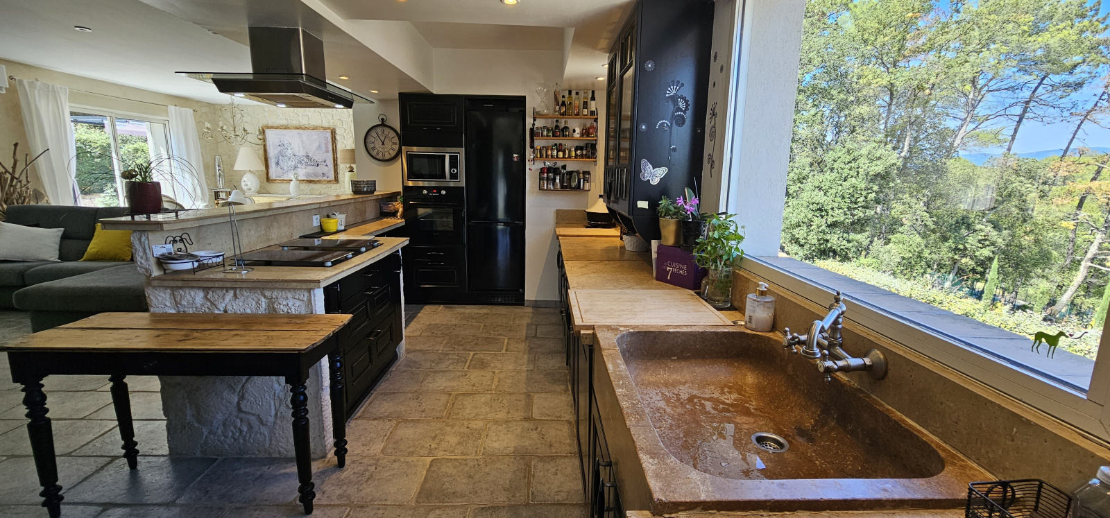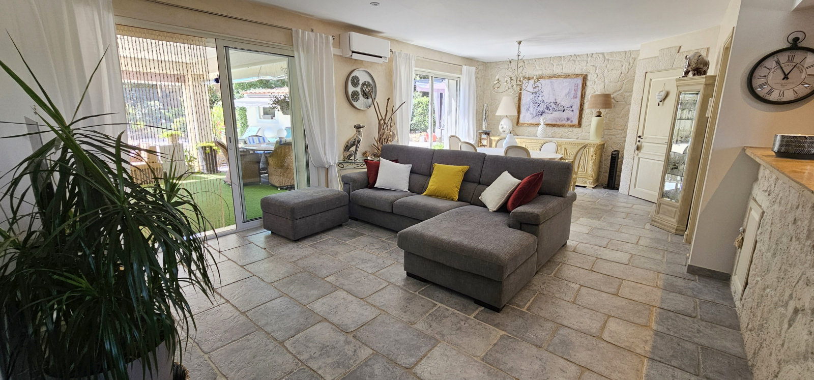 A Bagnols en Forêt, proche toutes commodités, sans vis à vis, en position dominante sur un terrain de 916m² entèrement aménagé, paysagé et clos.