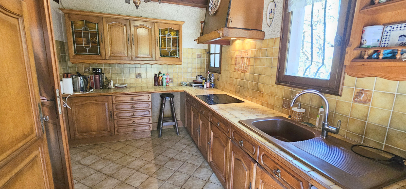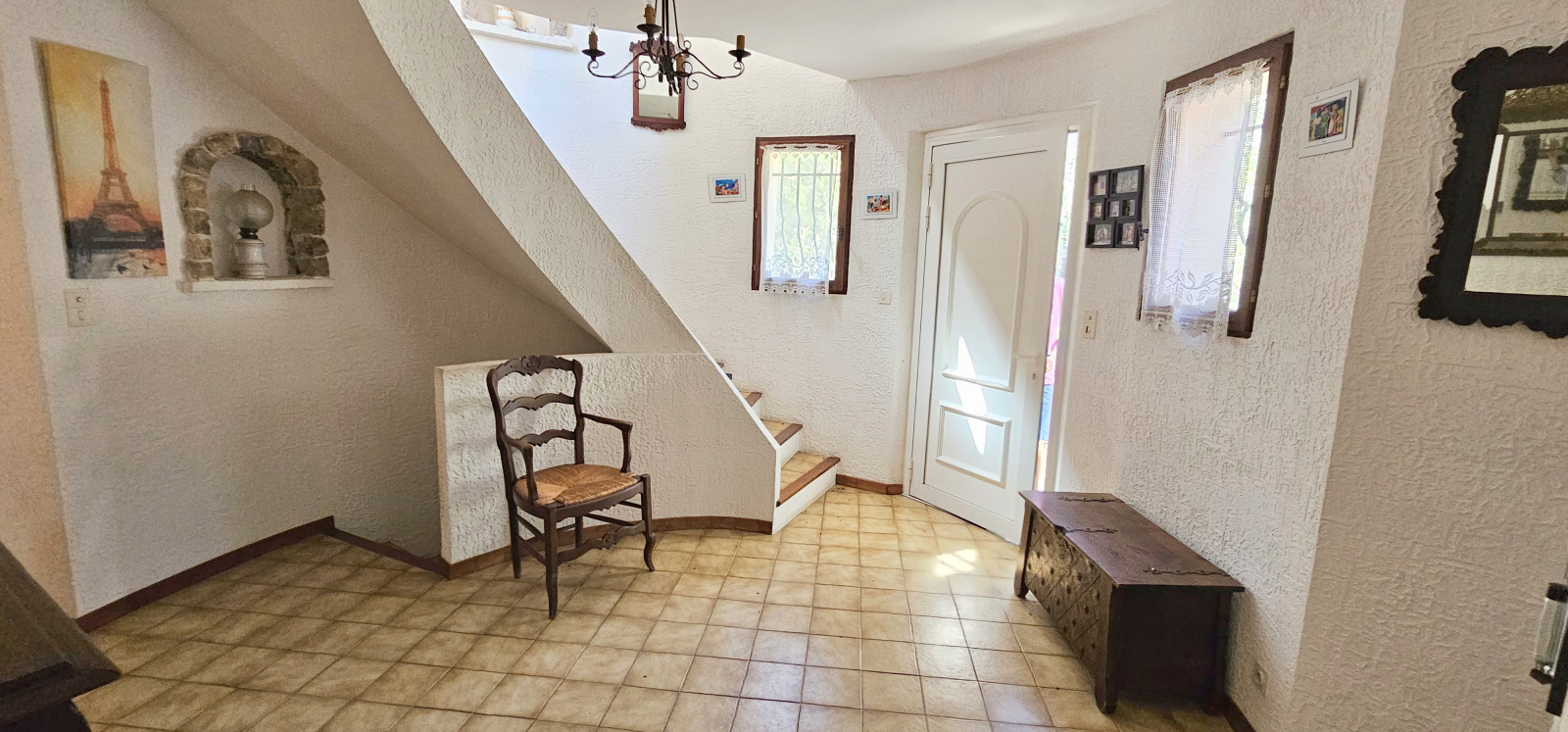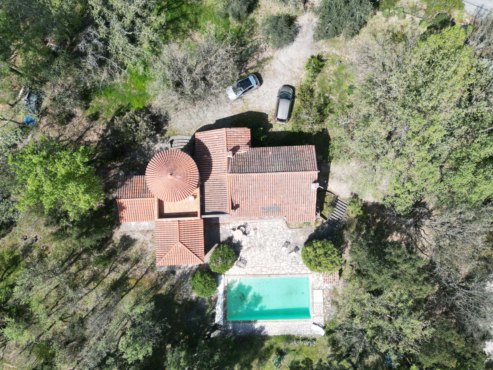Dans un environnement résidentiel aéré au calme, sur un beau terrain naturellement arboré de 2900m² villa à 80% de plain-pied, construite en 1972 et agrandie en 1976 , composée au rez de chaussée: une entrée dans la tour, un salon salle à manger ouvrant sur une terrasse sud en partie couverte, une cuisine indépendante donnant sur la terrasse, un cellier buanderie, WC indépendant avec lave-mains, 3 chambres dont une suite avec salle d'eau+WC , une salle de bains ( baignoire et douche) , dégagement avec placards (dressing), et à l'étage de la tour un bureau ou une 4ème chambre avec une terrasse de 10m².