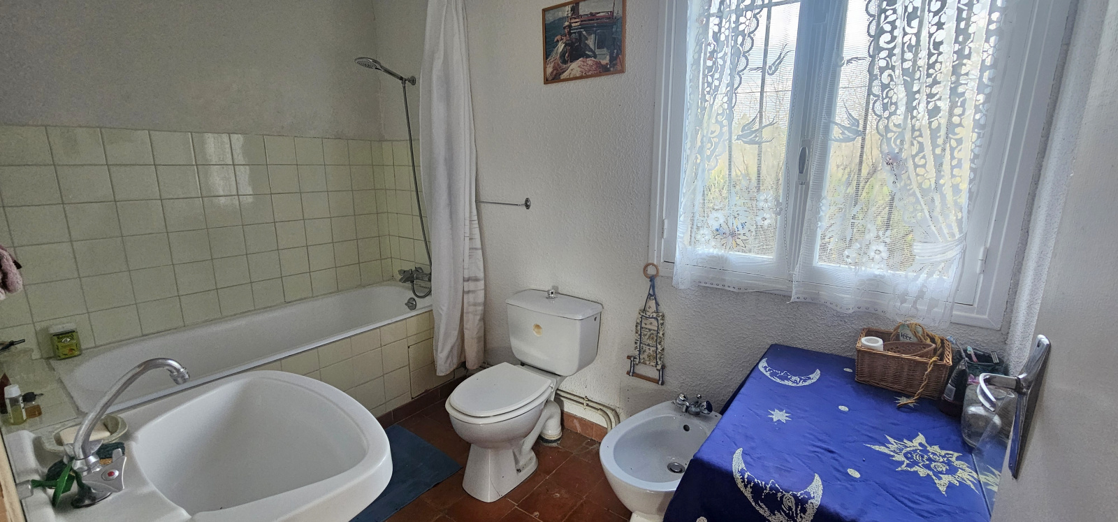 A l'étage: une chambre de 17m² ouvre sur une terrasse en partie couverte de 14m² offrant une vue superbe sur la campagne environnante, une salle de bains avec WC et une quatrième chambre.