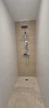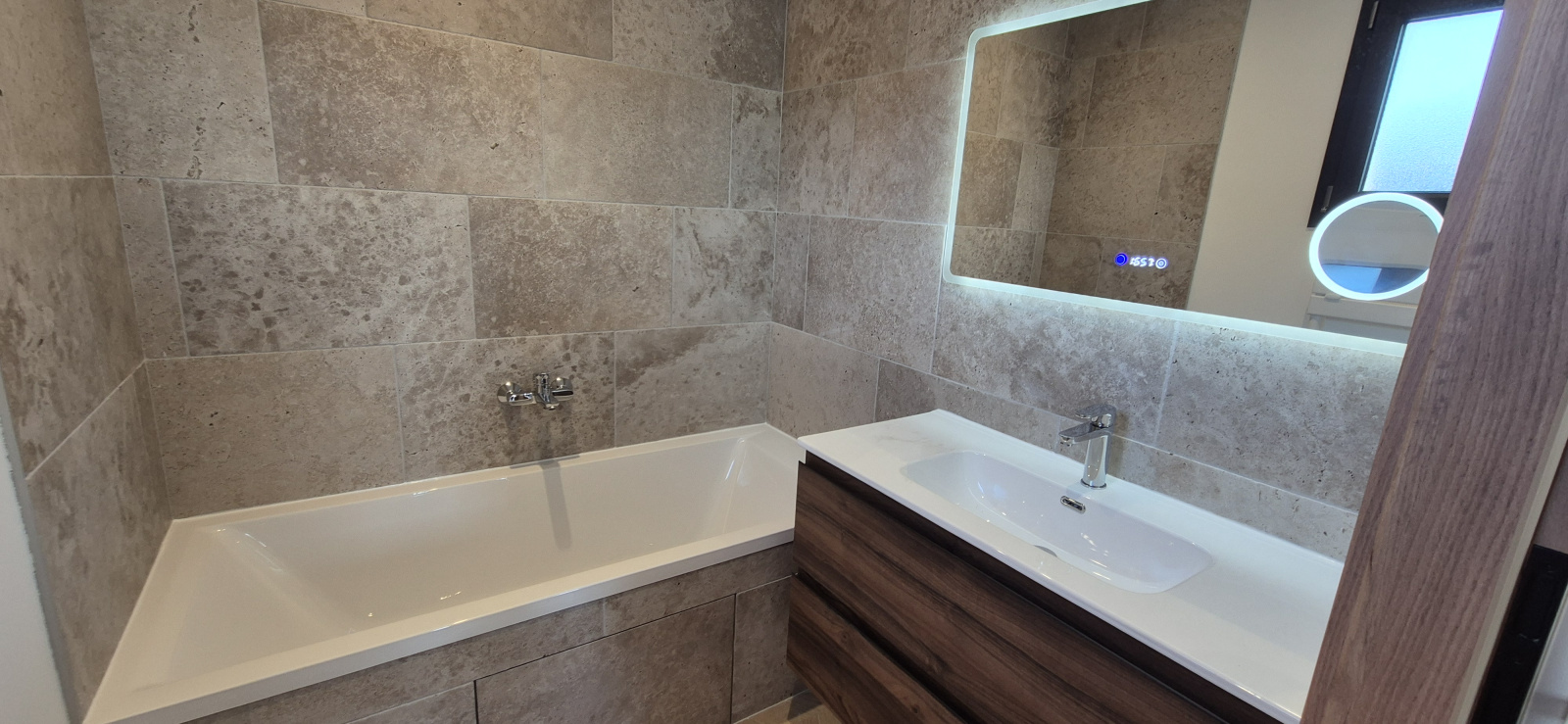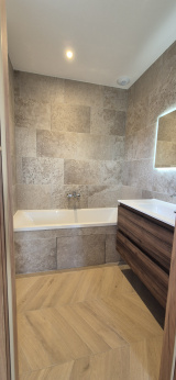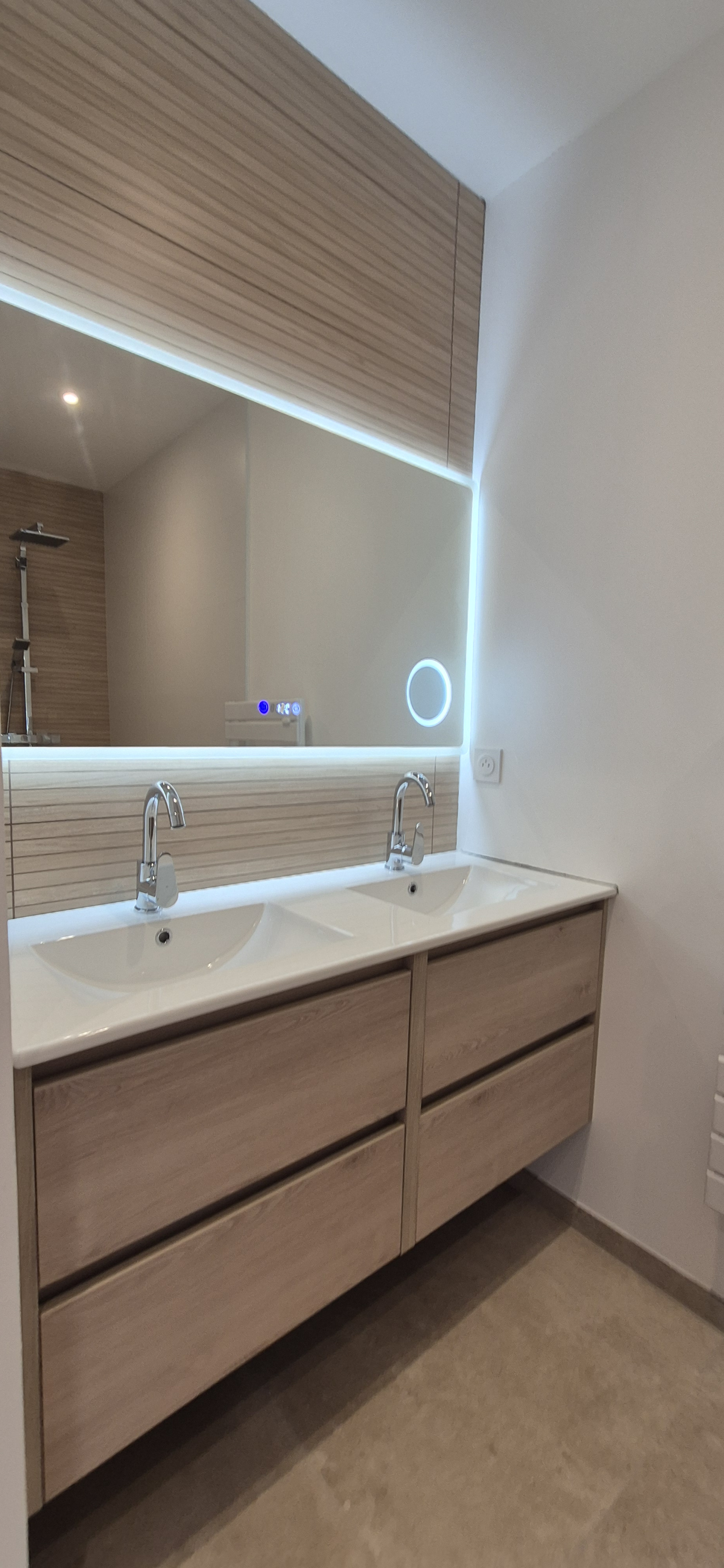 - Salle d’eau avec douche à l’italienne et meuble vasque