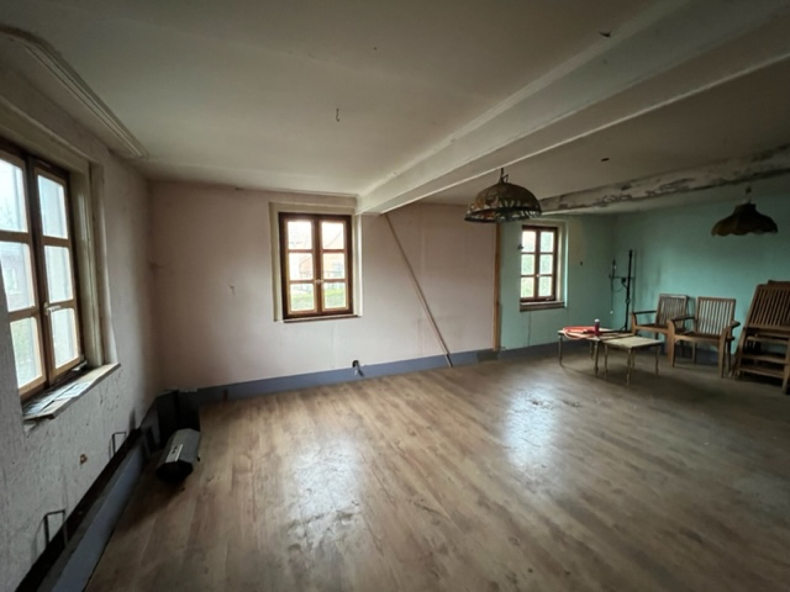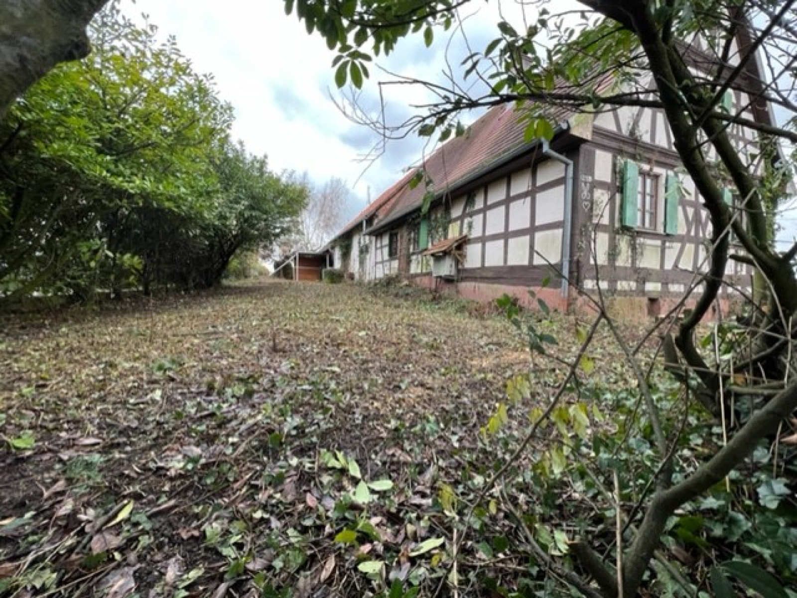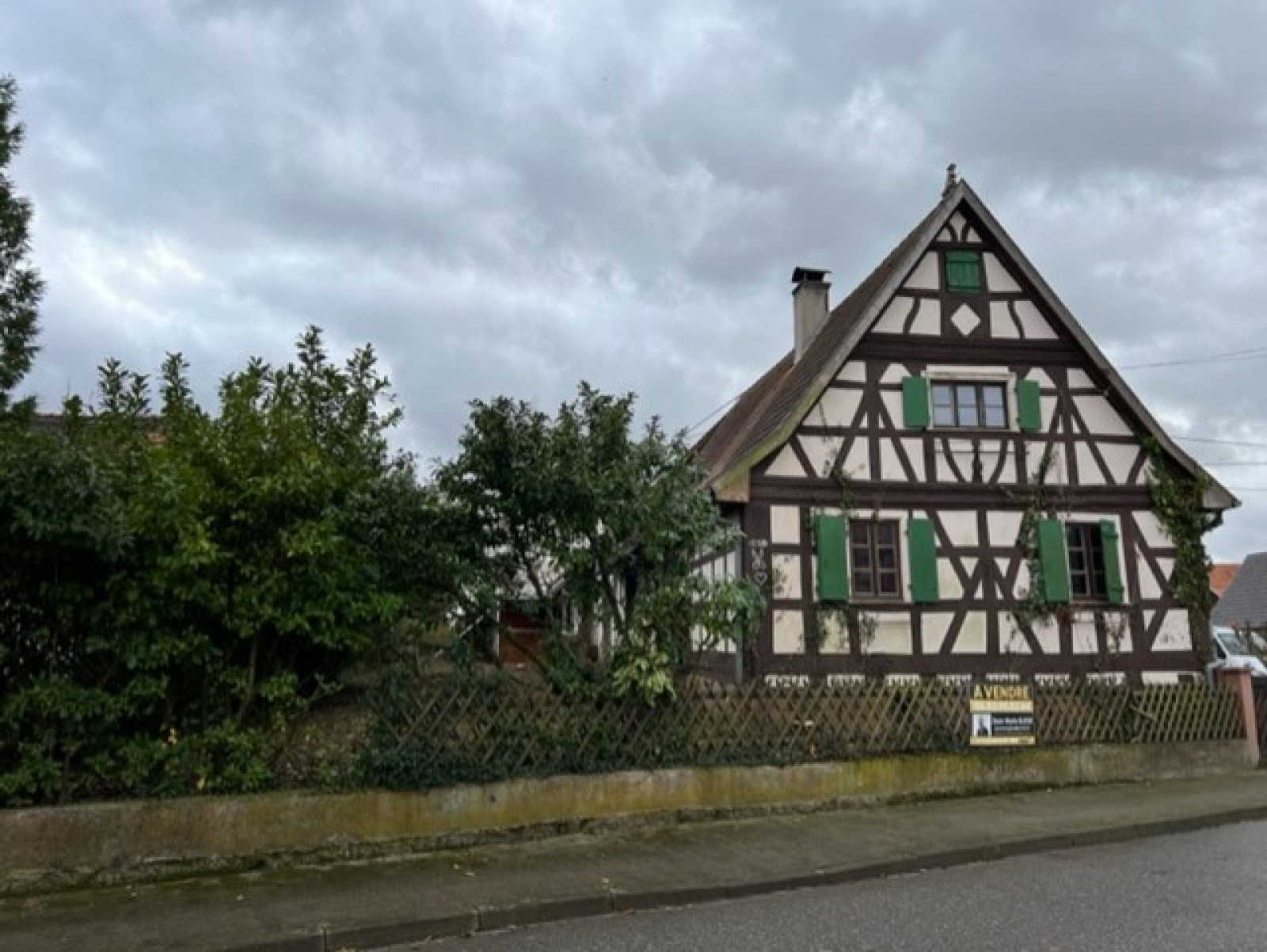 Maison à colombage d'environ 91 m² avec travaux, grange en bon état et dépendance relativement récente avec abri voiture et possibilité d'aménager l'étage avec une superficie de 62m² au sol. L'intérieur de la maison a été débarrassé et se trouve à l'état brut : séjour 29,50 m², entrée 10,80 m², cuisine 10,50 m², salle de bain 6,36m², WC 1,10 m² et à l'étage : chambre 13,18m², palier 6,65 m² et comble aménageable de 13,30 m². Toiture neuve, fenêtres à changer. Une extension sur la grange en bon état est possible. Joli jardin à défraîchir. Environnement calme, non loin de la frontière allemande et de l'autoroute à Scheibenhard. Les informations sur les risques auxquels ce bien est exposé sont disponibles sur le site 'Géorisques' du gouvernement : www.georisques.gouv.fr.