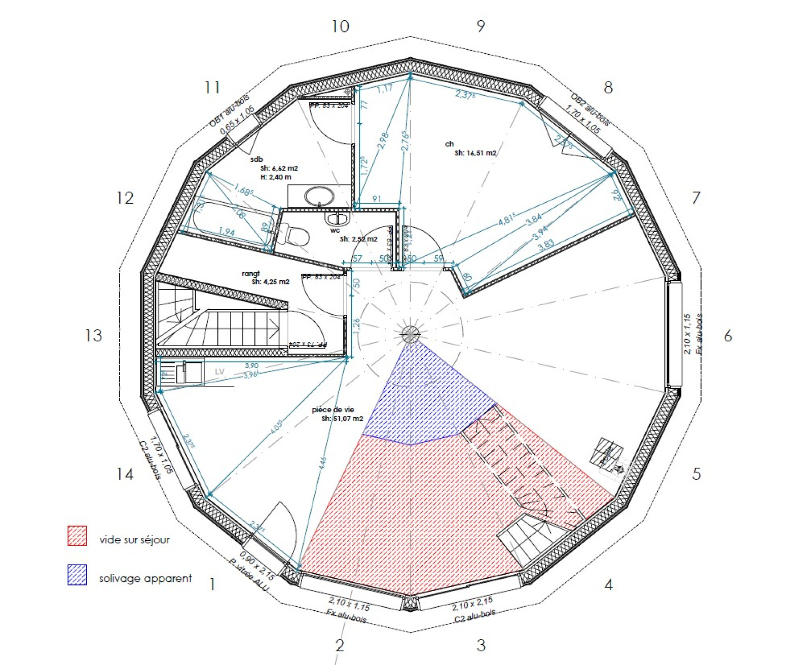 Isolation par les murs et par le toit norme RT 2012 (excellent DPE en B et A), menuiseries alu double vitrage, chauffage poèle à granulés, PAC air/air et convecteurs électriques.