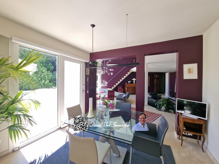 Ref 5922-DV-0625 : A Vendre : David VERT votre agent mandataire en immobilier depuis 2010 sur Châlons en Champagne et sa région vous propose A 5 minutes de Châlons en Champagne : Cette magnifique maison d'architecte baignée de lumière de 223 m² avec son parc de 5000 m² se compose : Au rdc : Entrée, dégagement, vaste séjour, salle à manger, cuisine, buanderie, cellier donnant accès au garage de plus de 50 m², cave, suite parentale avec salle de bains, douche, wc. De l'autre côté de l'entrée, dégagement, wc, salle de bains, 2 chambres, une salle de jeux. Terrasse sur tout le devant, orientation idéale. 1er étage : Mezzanine avec vaste salon / bureau et de chaque coté un vaste grenier permettant de créer 2 chambres supplémentaires avec une salle de bains. - Piscine chauffée et fermée par un rideau isolant et flottant, pool-house avec douche, wc et machinerie. Chauffage sol via pompe à chaleur eau/eau. Bien exceptionnel sur le Châlonnais dans un secteur avec toutes les commodités. Une visite s'impose, appelez-moi au 0608058992.