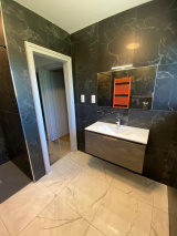 Elle se compose d'une grande entrée de 12.09 m2 donnant sur une cuisine équipée de 14.01 m2, d'un salon séjour de 38.47 m2, de deux chambres de 10.29 et 14.55 m2, d'une salle d'eau avec douche à l'italienne et WC de 5.63 m2, et d'un balcon terrasse.