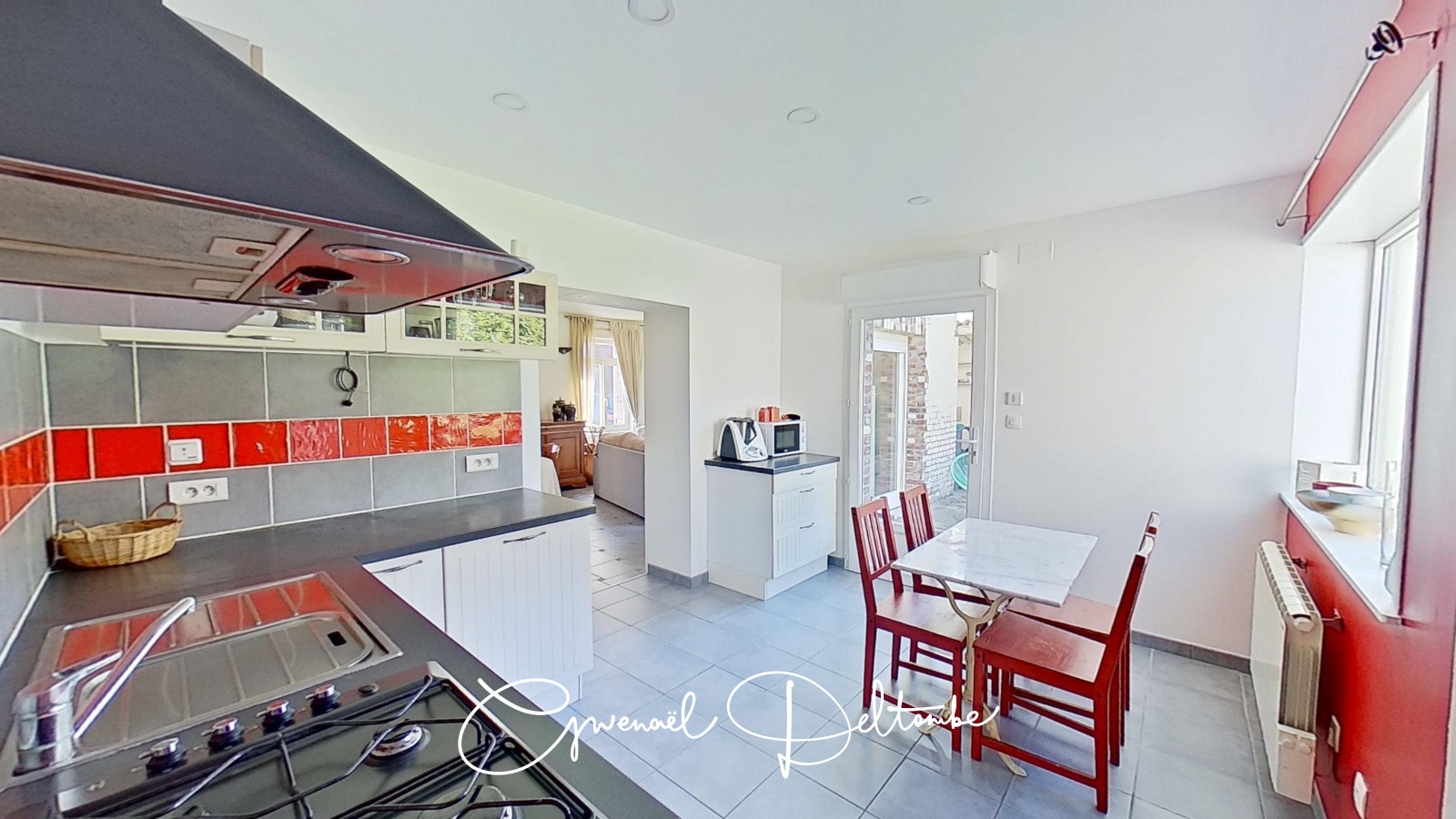 - Une cuisine équipée avec coin repas, accompagnée d’un cellier attenant
