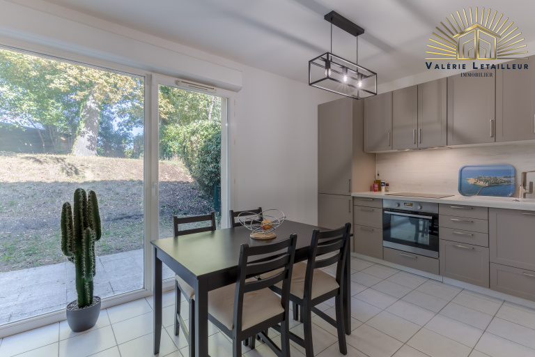 Avançons vers la pièce de vie, lumineuse et conviviale, ouverte sur le jardin grâce à deux larges baies vitrées. Vous y trouverez un confortable espace salon-séjour et une cuisine ouverte fonctionnelle, parfaite pour partager des moments en famille ou entre amis. Depuis cette pièce, vous accédez à la terrasse et au jardin sans vis-à-vis, idéal pour profiter des beaux jours en toute intimité.
