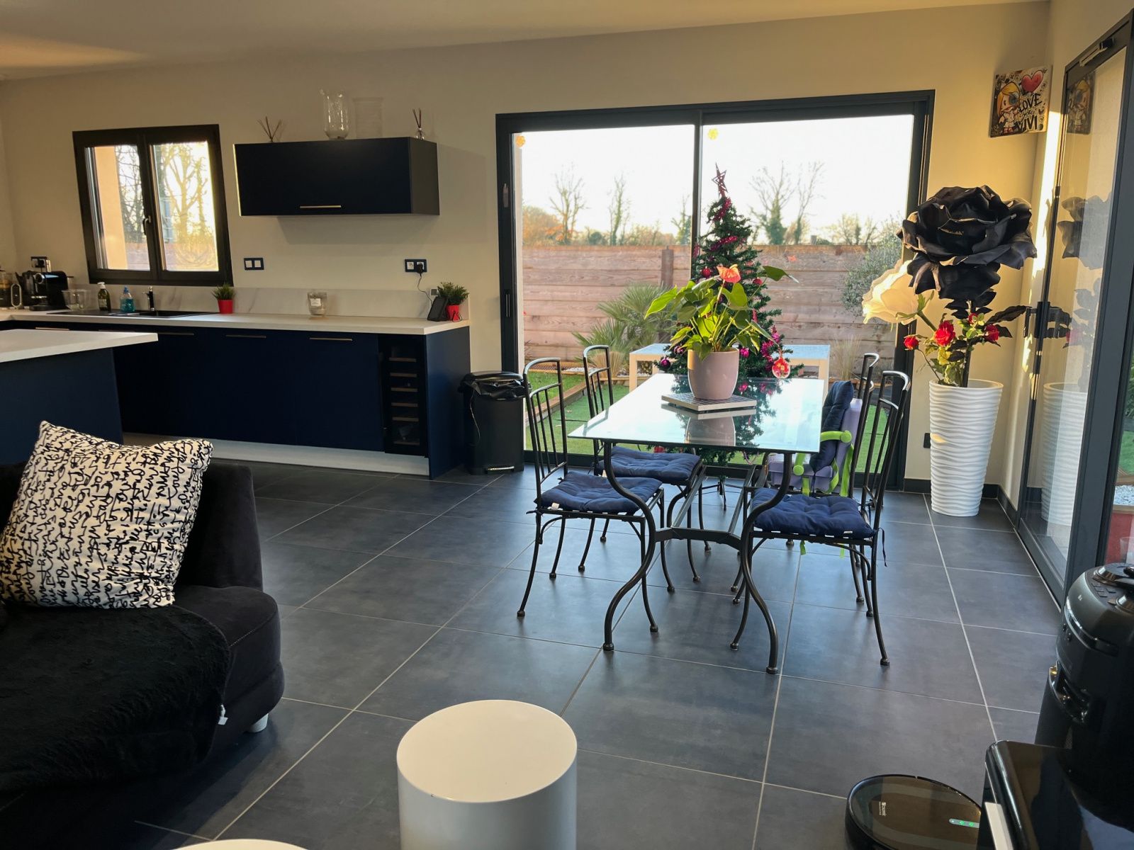 Au coeur d'Ambérieux en dombes, hors lotissement à proximité des commerces et des écoles, belle villa de plain-pied de 2023 de 88,5 M2 aux normes RT 2012 avec de belles prestations, biaies en aluminuim,
