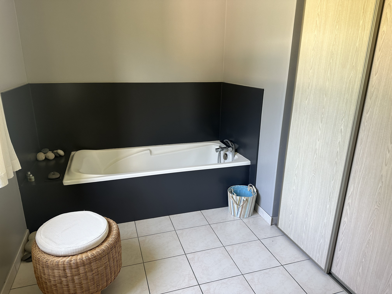 Mezzanine avec bibliothéque, Une suite parentale avec salle d'eau et dressing aménagé. 2wc.
