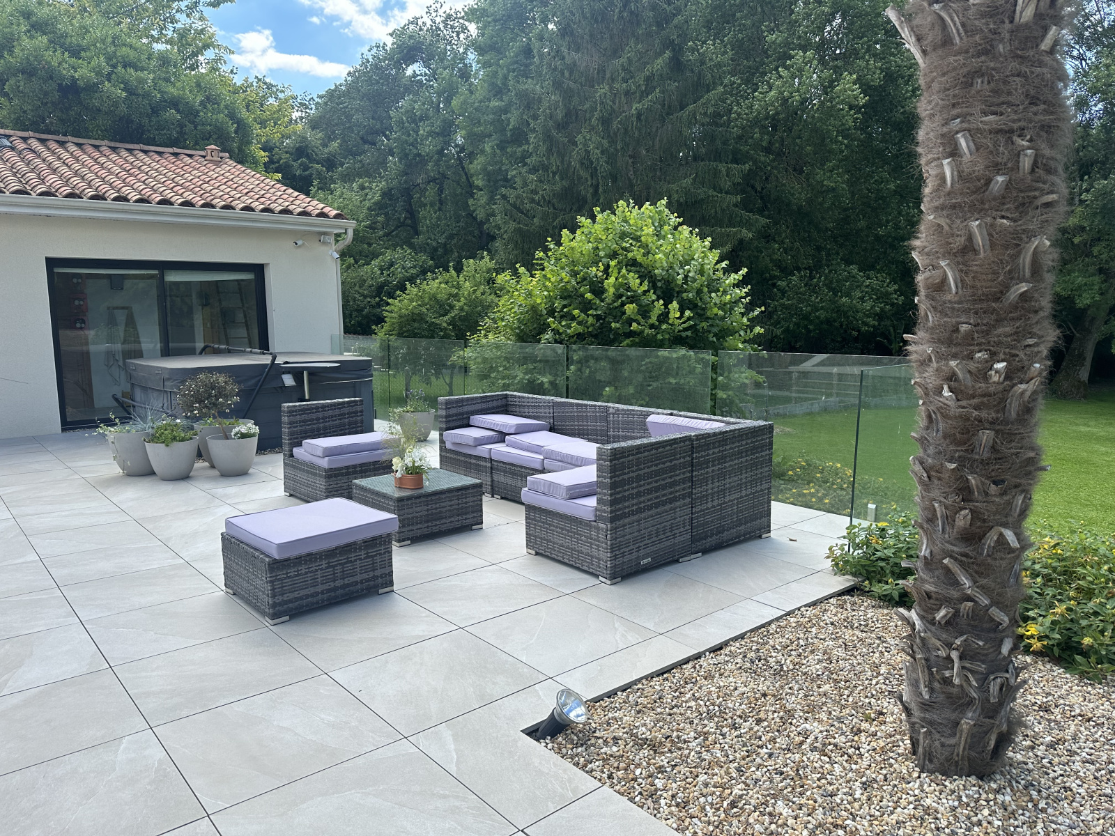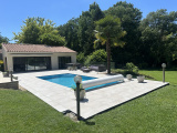 Coté jardin, trés grande terrasse équipée d'une piscine au chlore et d'une pompe à chaleur, jacuzzi. Pool house d'environ 33m2 avec bar sauna douche et wc.