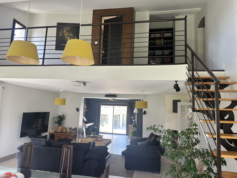 Elle se compose d'une belle entrée donnant sur une magnifique cuisine conviviale d'environ 24m2. Cette cuisine équipée refaite en 2023 dispose également d'un espace repas extremement lumineux d'une surface d'environ 23m2. Trés beau séjour salon de 60m2 équipé d'une cheminée et d'un home cinéma. L'espace de vie est orienté coté piscine et terrasse.