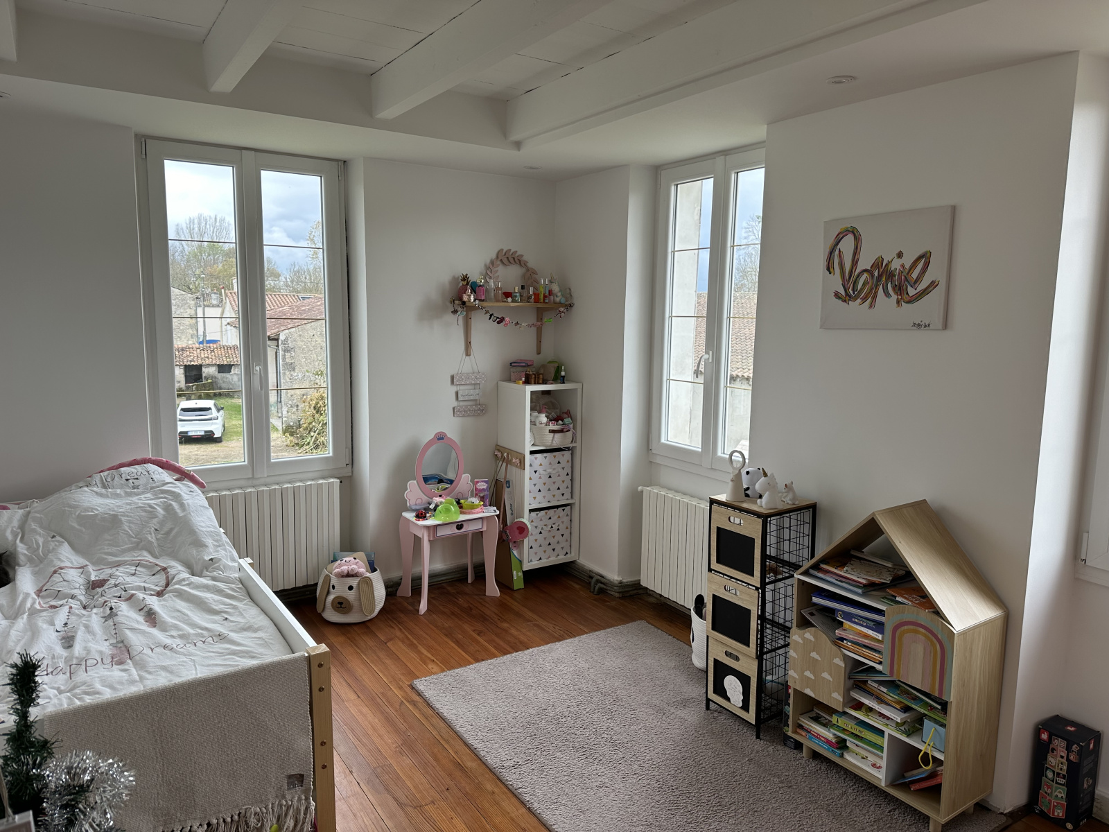 L'étage avec ses beaux volumes et ses hauteurs sous plafond se compose de 4 grandes chambres sur parquet d'époque dont une de 30m2 agrémentée de son dressing. salle de bains et douche parée d'un élégant travertin. Pour le confort de la famille, une autre salle de douche ainsi qu'un wc ont été aménagés.