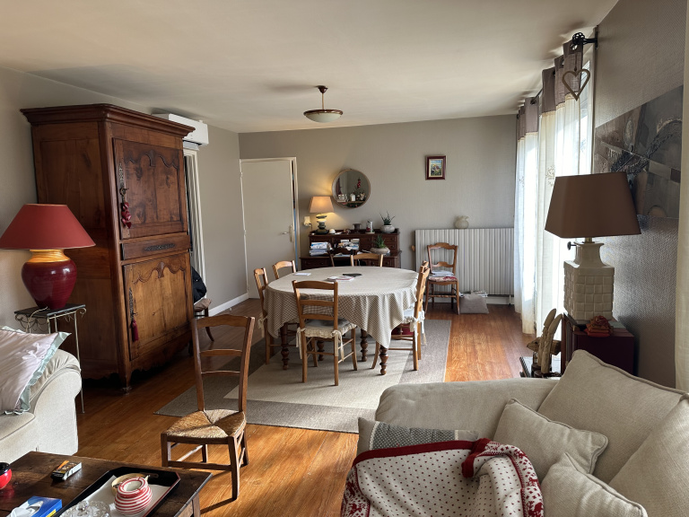 Sandra vous présente en exclusivité cette maison de plain pied trés bien entretenue, située dans un quartier proche des écoles et commerces. Installation clim réversible et isolation des combles fait en 2023. Elle se compose d'une entrée desservant un wc séparé, salle d'eau refaite en 2005. 3 chambres sur parquet dont 2 avec placards. Séjour salon sur parquet trés lumineux de 31m2 ouvrant sur la terrasse. Cuisine équipée et aménagée donnant sur le cellier. Petit garage. Double vitrage et volet roulant. Jardin clos de 528m2. Portail, portillon, terrasse et crépi exterieur refait.Cette maison présente de nombreux atouts. Classe énergetique C. A voir rapidement. Me contacter 0683405316.