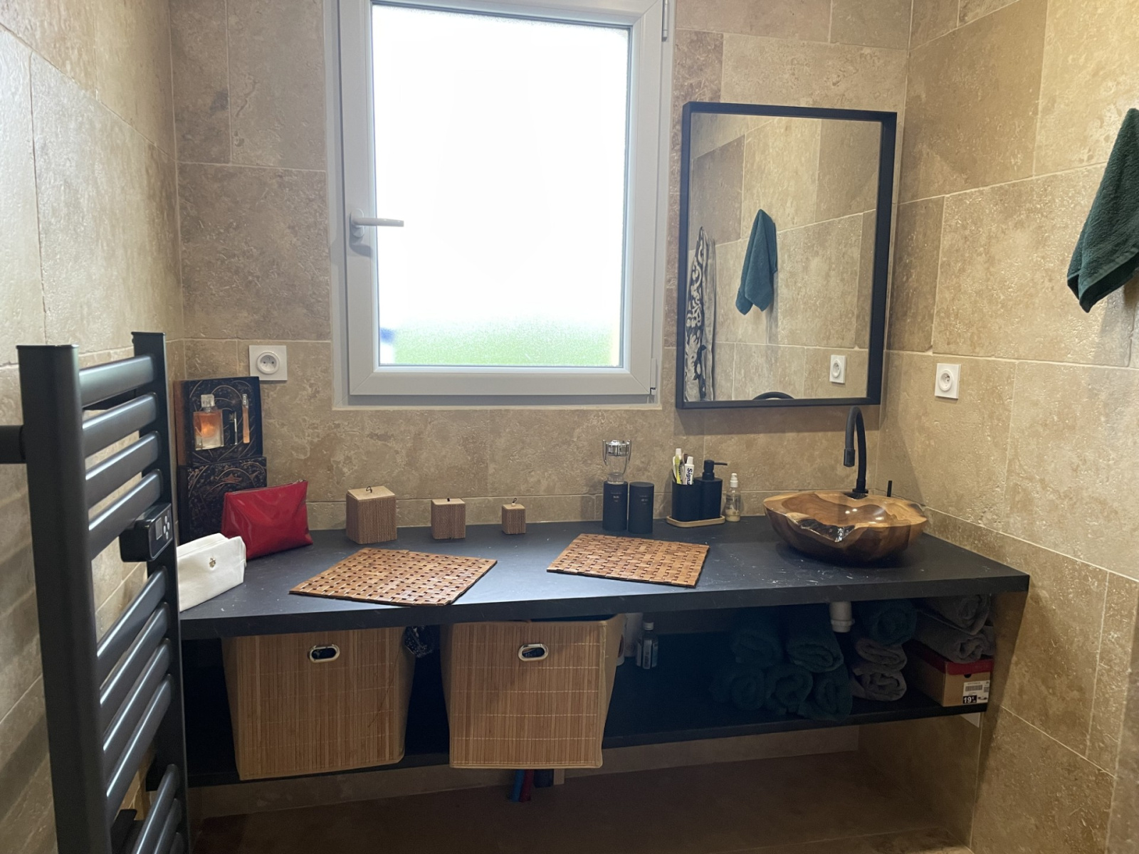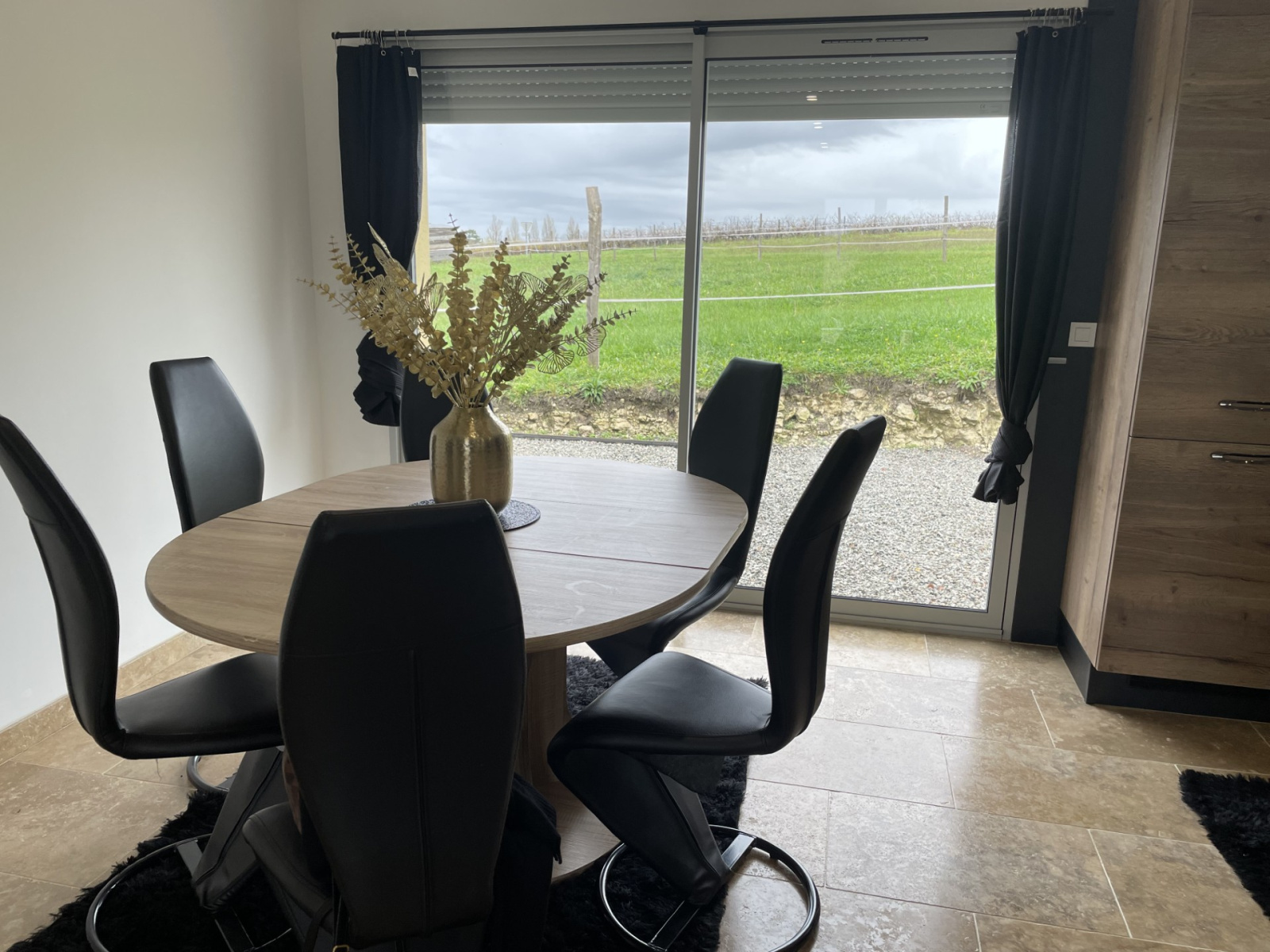 SALLES D'ANGLES proche de la base militaire Nathalie ROUSSEAU vous propose en exclusivité cette belle maison de 2022 de plain pied de 115 m2 environ, composée d'une vaste pièce de 48 m2 ( salon/séjour/cuisine équipée), cellier, 3 chambres, wc, salle d'eau et garage de 25 m2, le tout sur un terrain de 1200 m2 COUP DE COEUR
