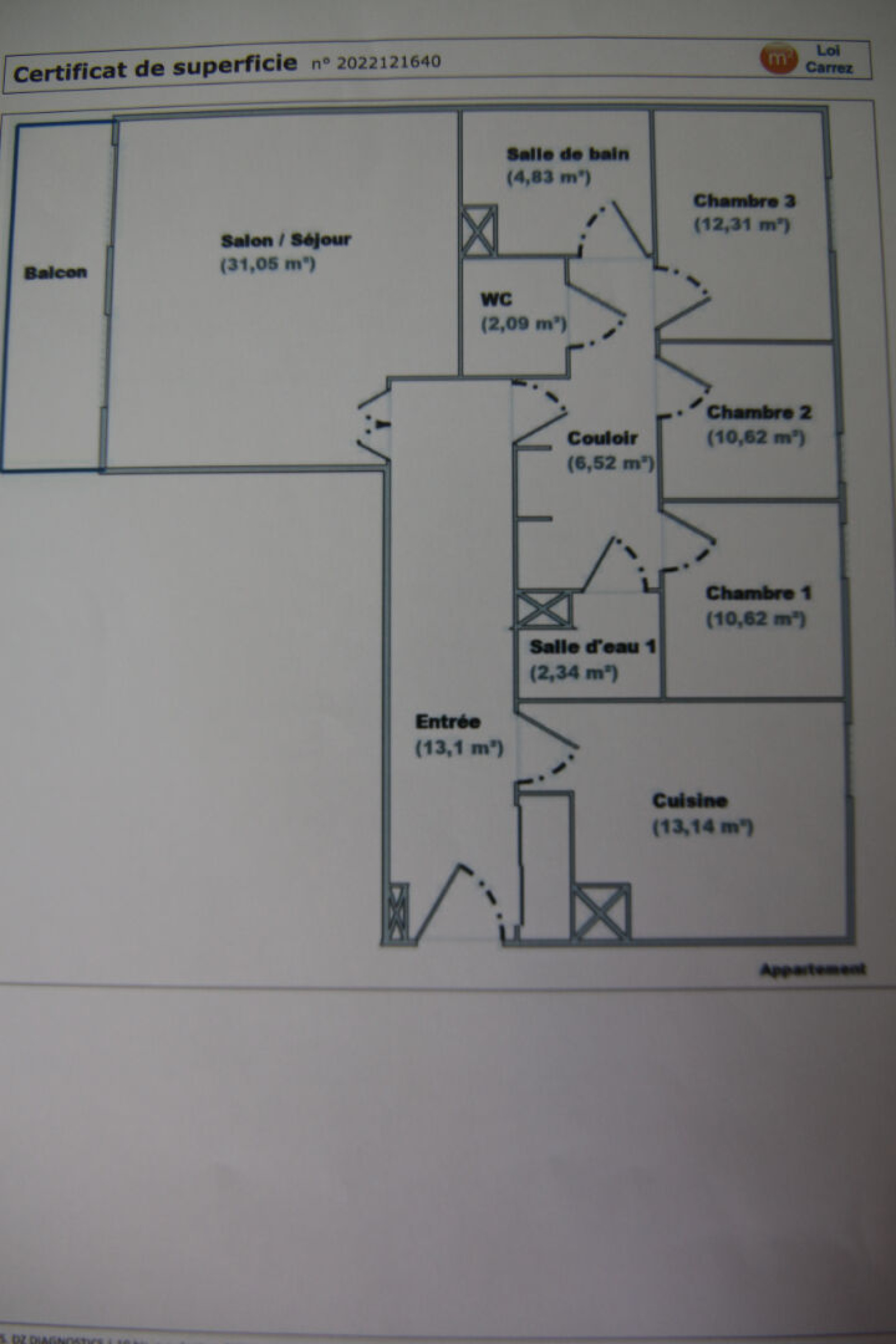 Exclusif, au 12 rue Clérisseau à Metz, Christian SCHMIDT, Agent Mandataire Immobilier PROVIMO, Vous propose ce bel appartement 5 pièces de 107 m² idéalement situé au calme et proche de toutes commodités. Cet appartement est situé au 1er étage d'une résidence datant de 2000 et qui est superbement entretenue. Il dispose de 3 chambres allant de 10.62 m² à 12.31 m² pour la chambre parentale, de deux salles de bains, d'une cuisine de 13.14 m², d'un salon séjour de 31.05 m² qui donne sur un joli balcon de 12 m² où vous pourrez tranquillement déjeuner ou diner et profiter des extérieurs avec vos amis ou en famille. La résidence est équipée d'un ascenseur et l'appartement permet un accès PMR (Personne à Mobilité Réduite). Il est chauffé au gaz individuel, la chaudière à condensation étant quasi neuve (juillet 2021) et un désembouage des radiateurs vient d'être effectué. Ce bel appartement dispose d'une cave, et d'un garage individuel fermé en sous-sol. Vous pourrez aussi vous stationner à 50 mètres de la résidence sans aucun problème. La taxe foncière est de 1400 euros et le montant des charges mensuelles est de 230 euros. Merci de privilégier le contact par téléphone. Je reste à votre écoute pour tous renseignements complémentaires.