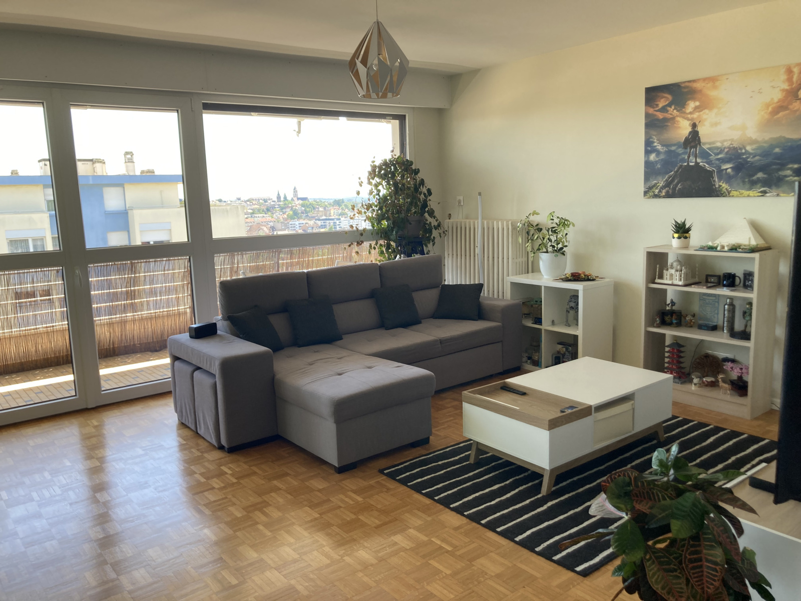 - un salon-salle-à-manger d'environ 38 m2 avec balcon de 17 m2 exposé plein sud offrant une vue dégagée sur la ville,