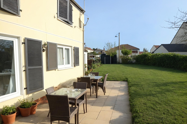 Au rez de chaussée vous trouverez un salon séjour de près de 28 m² qui donne sur une jolie terrasse d’environ 35 m², une cuisine moderne équipée de 9.41 m² et un coin WC.