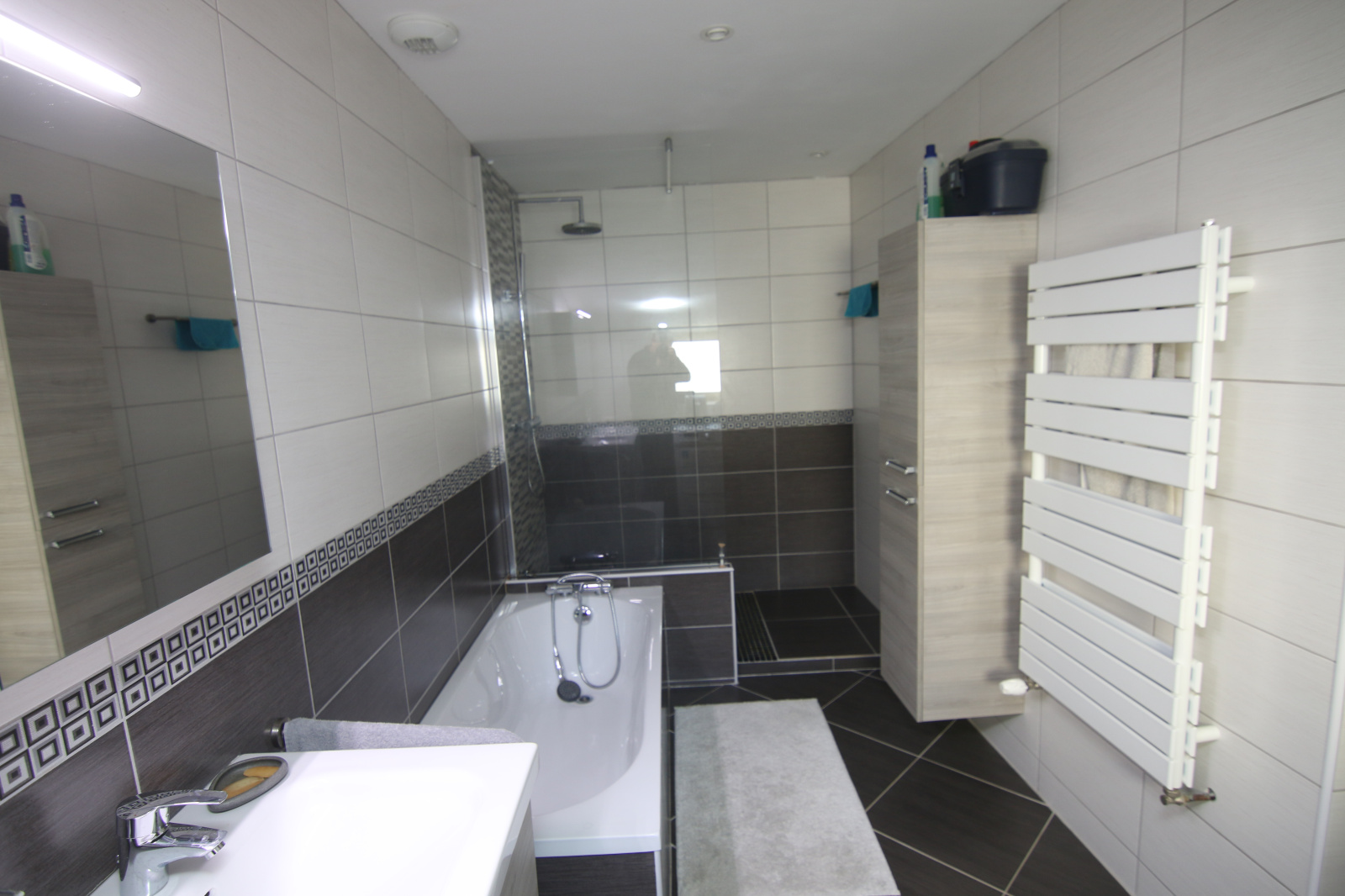 A noter qu’une partie des combles d’environ 40 m² sont aménageable et offre diverses possibilités (salle de jeux pour les enfants, salle de détente, etc…).