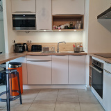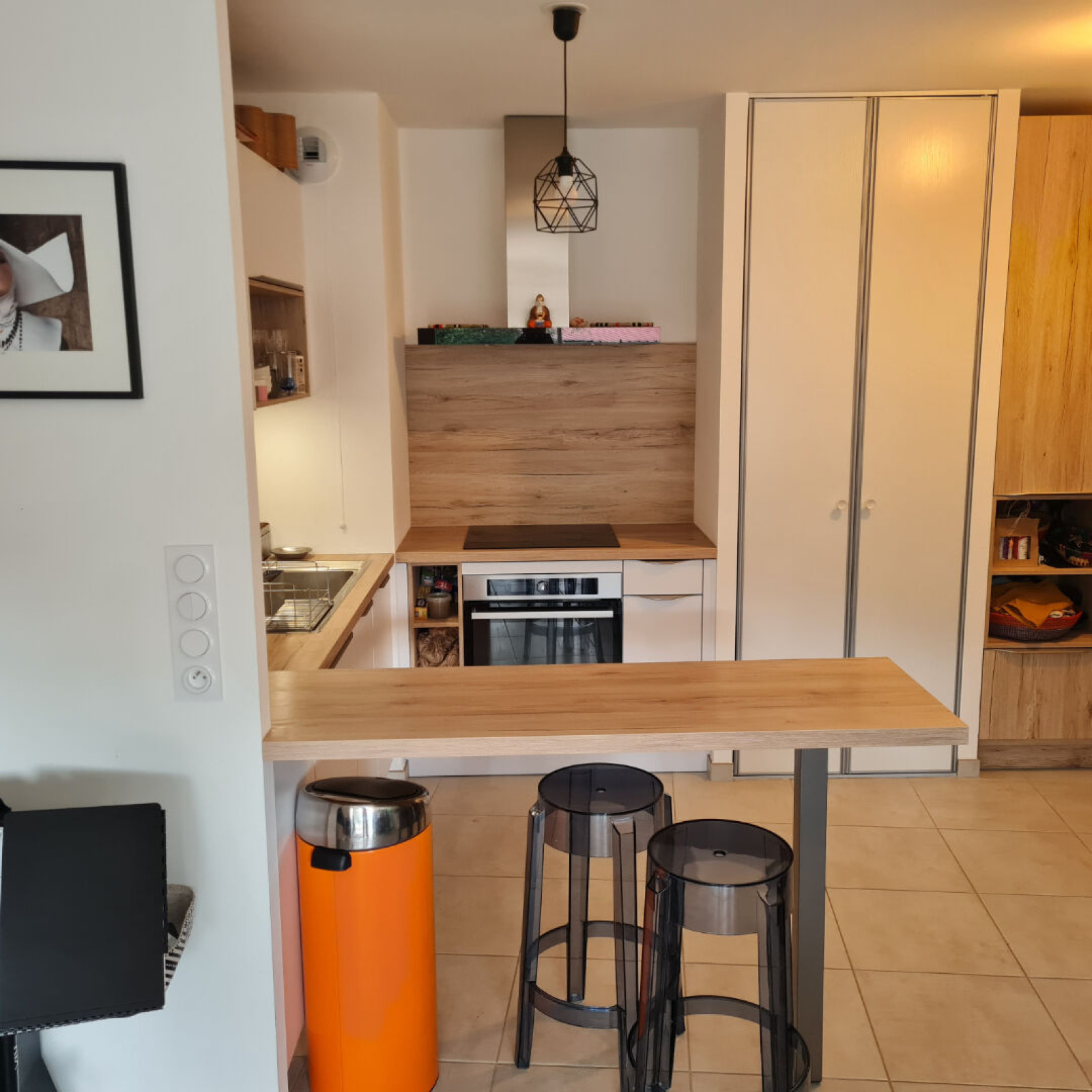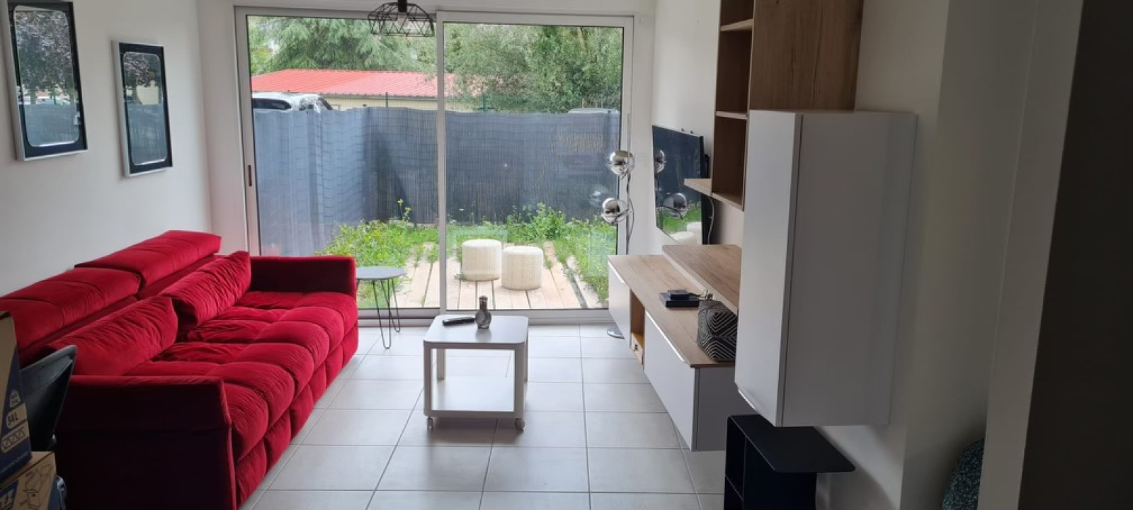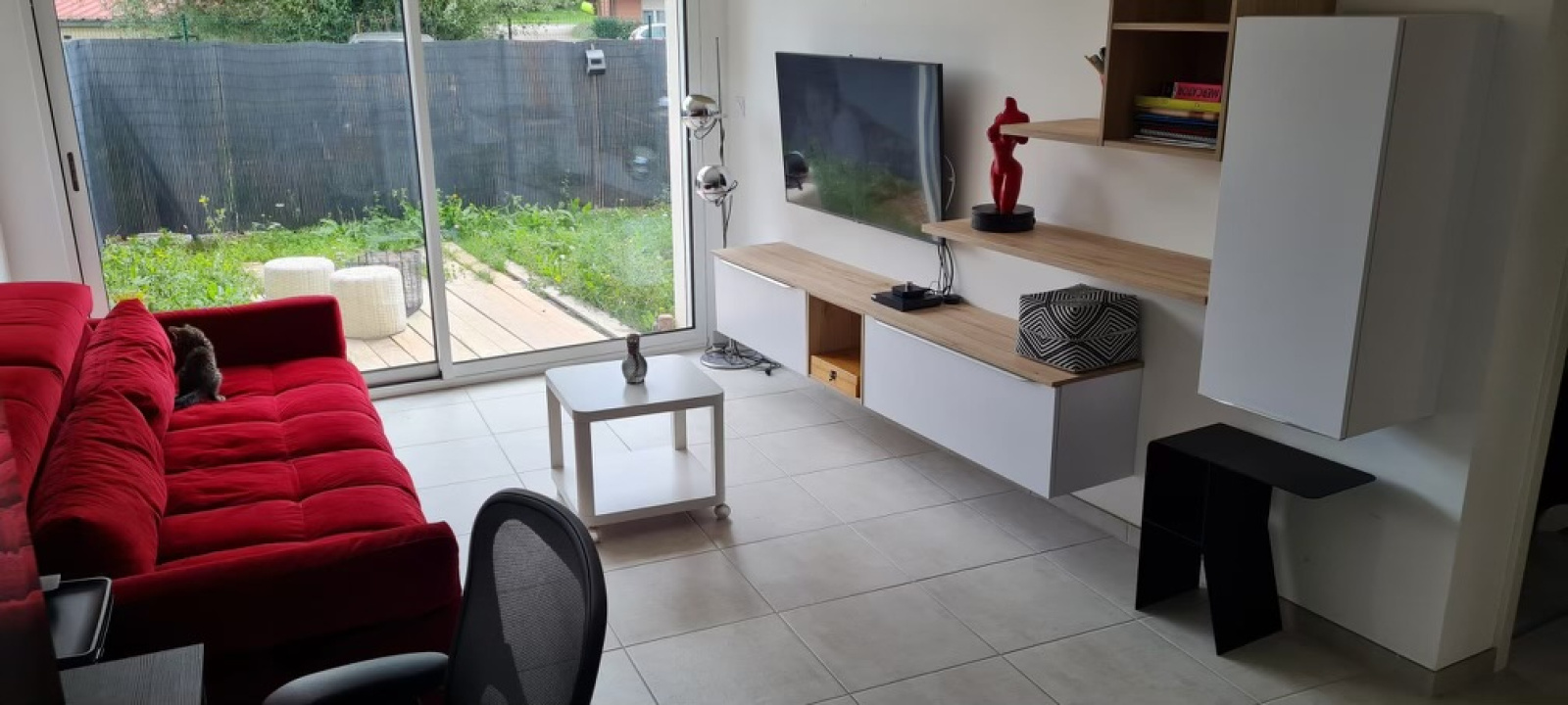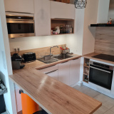 Profitez d'un salon séjour ouvert sur sa cuisine moderne entièrement aménagée et équipée. Cet espace vous donnera accés à son petit jardin de 38m² clos.