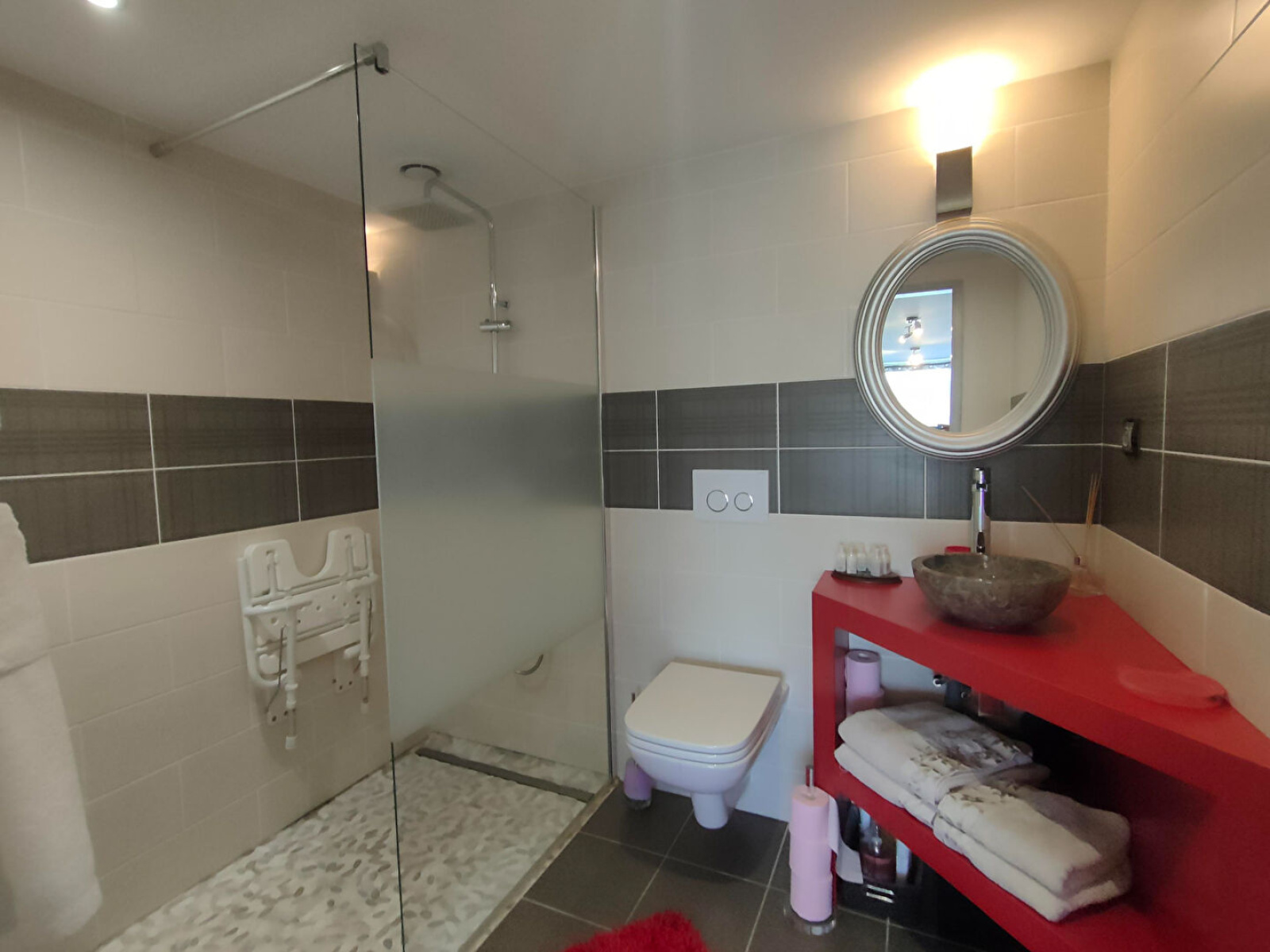 - au 1er : dégagement sur mezzanine servant de bureau, 2 suites familiales avec espace salon privatif/salle debain/WC, chambre avec salle de bain/WC, salle de bain indépendante, chambre, WC.