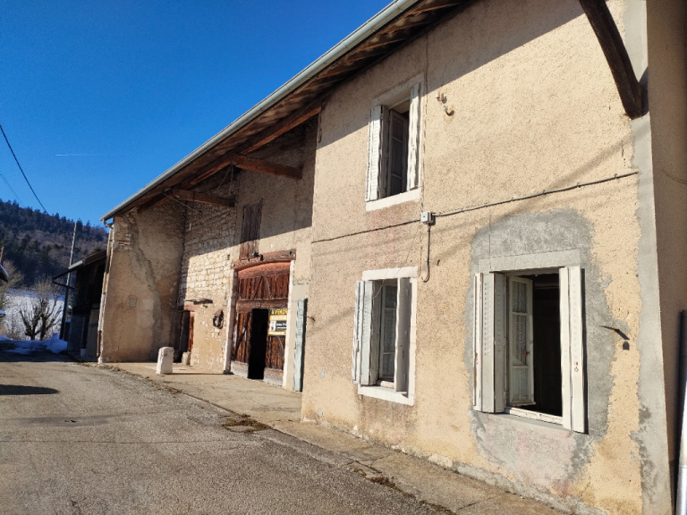SOUS COMPROMIS en exclusivité, Votre conseillère Audrey Lyandrat vous propose Dans un hameau de Thézillieu, maison en pierre de 135m2 avec grange et terrain. Offre un beau potentiel. Façade habitable plein sud. Maison lumineuse. Anciennement composée de 2 habitations, vous trouverez aujourd'hui une seule bâtisse comprenant: - au rez de chaussée : entrée avec point d'eau, une cave, une grande pièce cuisine/salle à manger de 25m2, un salon, un WC. - au 1er étage : 3 chambres (dont 2 de plus de 20m2), une salle de bain avec WC. Prévoir des travaux à rénovation : électricité, chauffage, huisseries, isolation, plomberie. Grange attenant avec ancienne porte en bois. Ecurie à côté. Bénéficiez d'un autre garage à 20m de la maison. Beau terrain plat de 150m2, facile à entretenir, idéal pour vos enfants ou pour jardiner. Le petit + : une fontaine d'eau de source juste à côté! Desservie par une impasse communale, très peu de circulation sur cette rue.