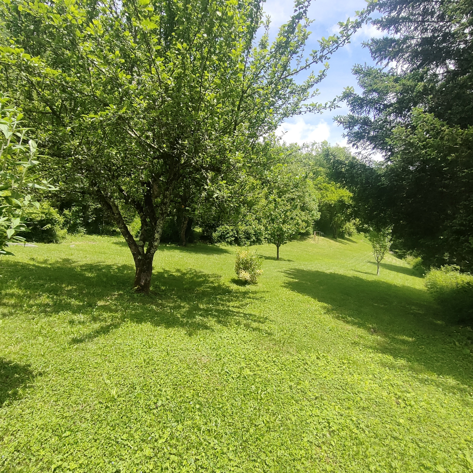 Il ne me reste plus qu'à vous parler du terrain de loisirs de 1200m2 et de son abri de jardin de 15m2. Ce terrain est arboré. Un petit banc vous invite à la détente, à la contemplation de la vue dégagée et du calme.