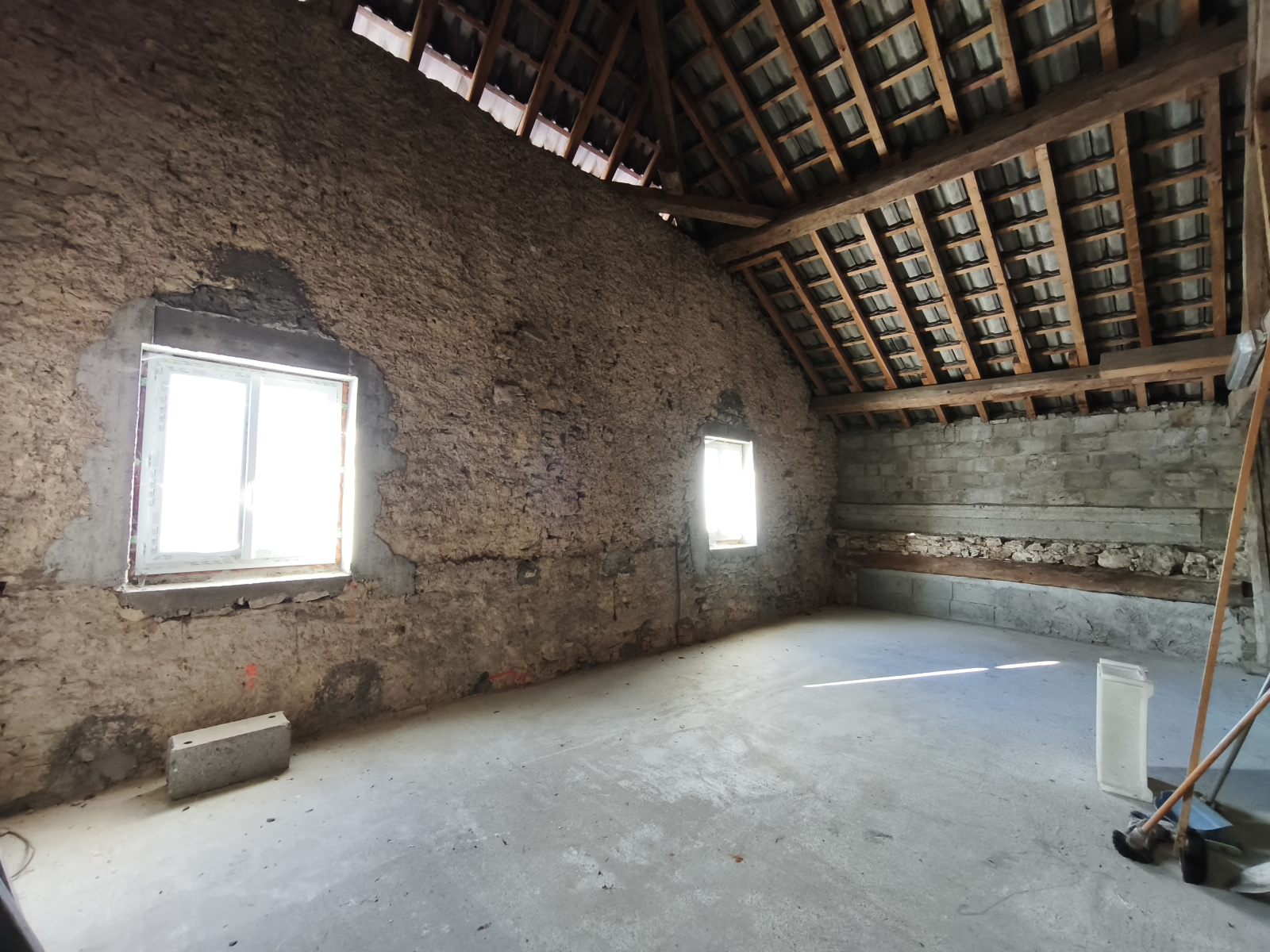 - au 1er : dégagement desservant 2 chambres avec chacune salle de bain et WC, ainsi que le reste du grenier pouvant être aménagé sur 70m2 environ