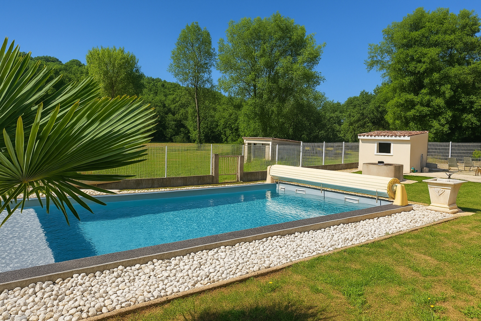 En exclusivité avec Marie-Claire TESTUT - AGEN nord Ouest, 10 minutes - Au calme, dans un environnement champètre, belle villa T4 plain-pied de 115 m2 - Composée d une pièce de vie lumineuse de 38 m2 , de 3 chambres, dont 1 spacieuce avec dressing et salle d eau privative - 1 cellier - Piscine au sel (8x4) - double vitrage - climatisation, ballon thermodynamique et poele à granulés - vendu avec 1 ha de terrain plat (dont un peu de bois) - Accessibilté rapide sur Agen - Commoditées à 8 minutes en voiture.