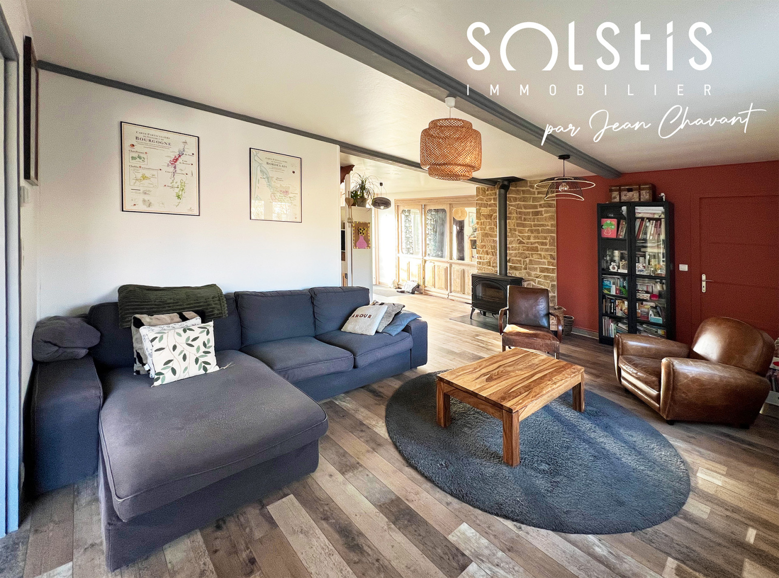 • Un salon chaleureux sublimé par un poêle à bois, apportant caractère et convivialité.