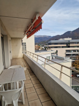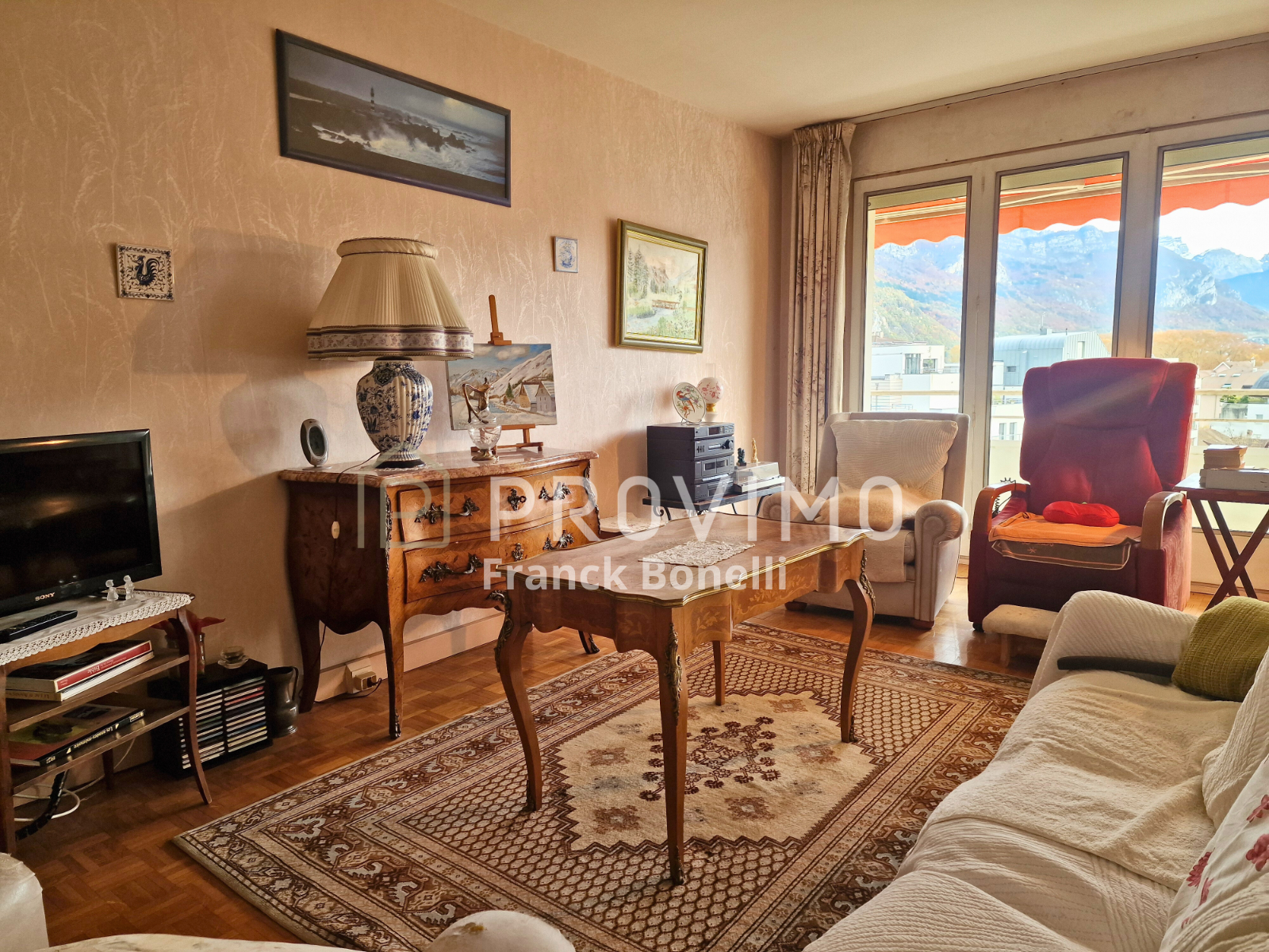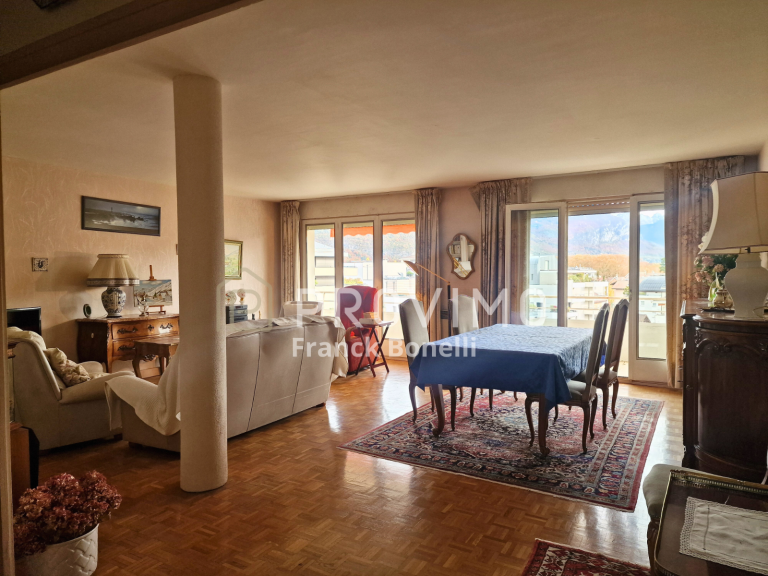 Perché au 5ᵉ étage d’un immeuble de belle tenue, il séduit par sa luminosité et sa vue dégagée sur les montagnes annéciennes et les toits de la ville.