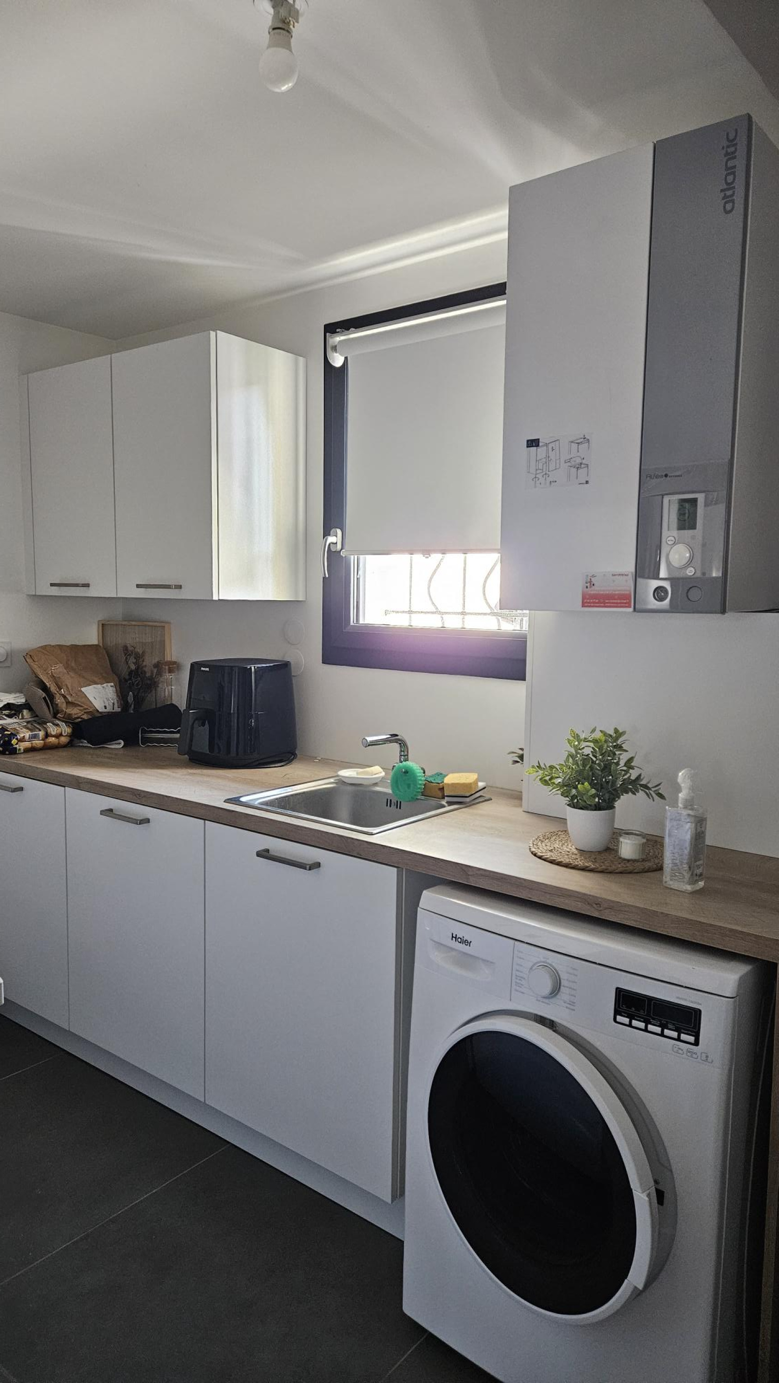 Egalement une entrée spacieuse avec placard et une buanderie aménagée.