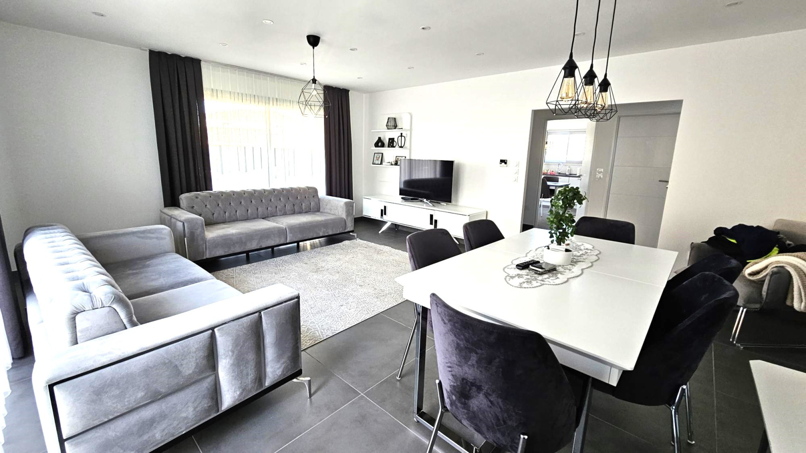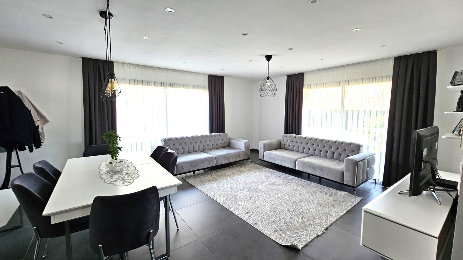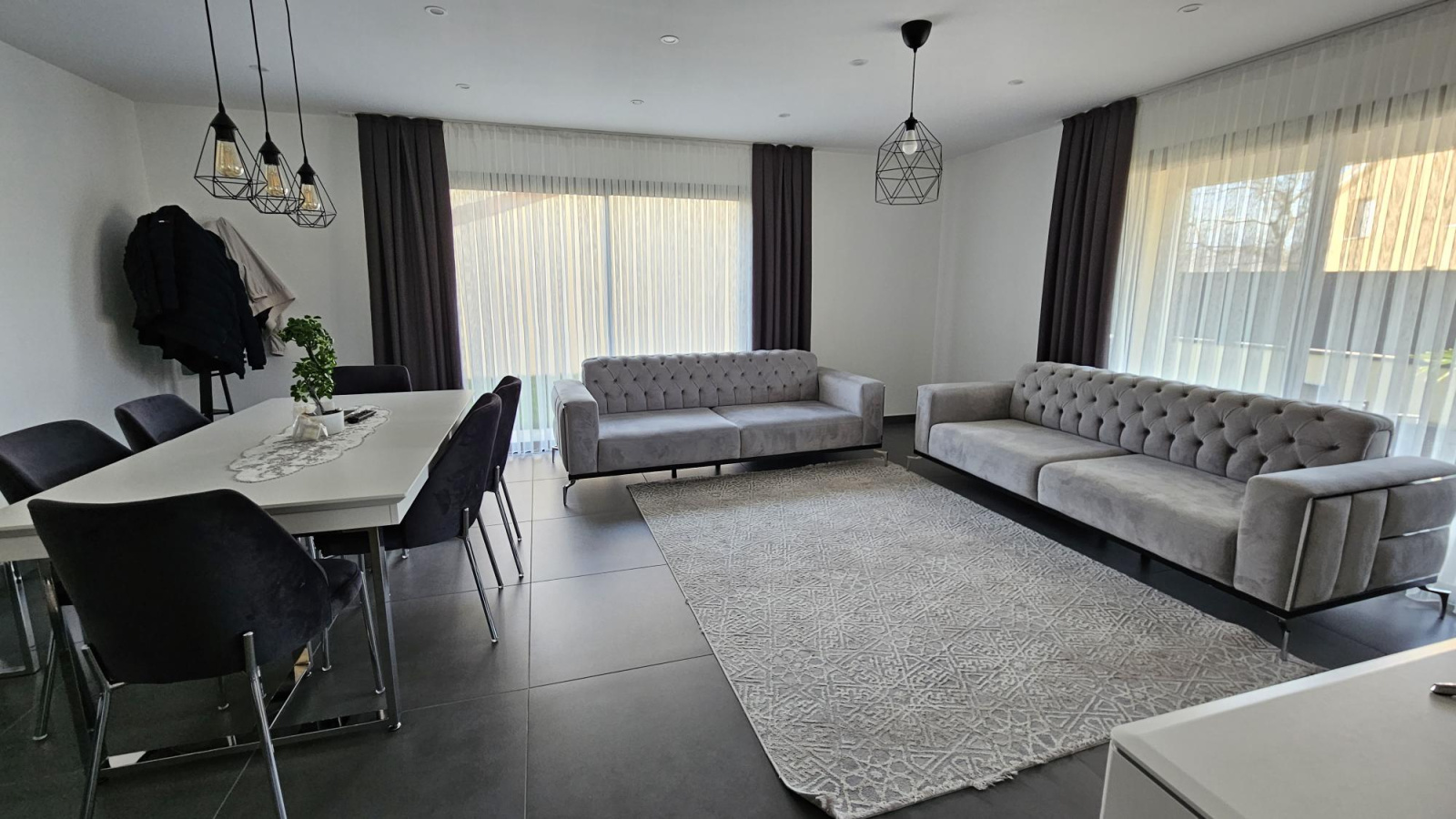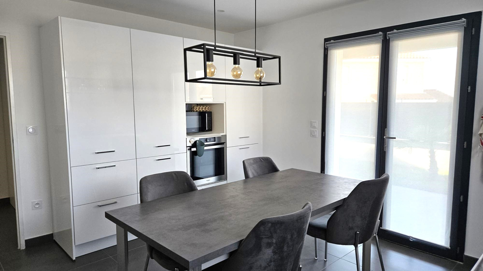 Une pièce à vivre de 47m2 avec de grandes baies vitrées qui apporte une luminosité agréable à vivre, dont une cuisine de 16m2 entièrement équipée moderne.