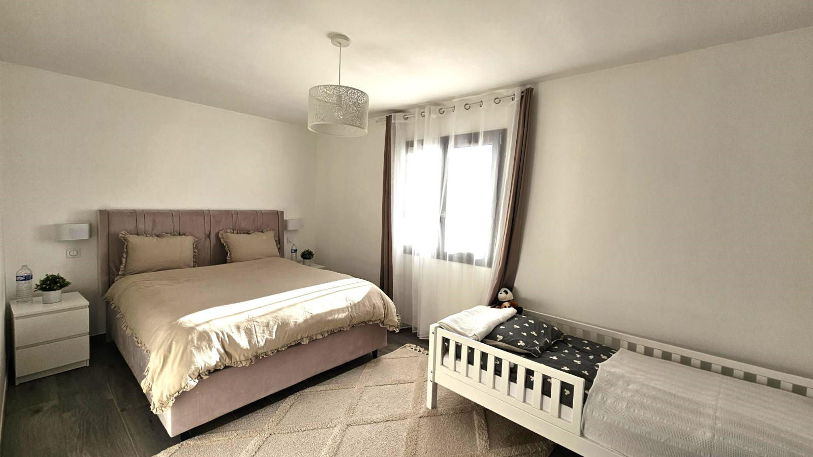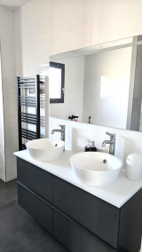 Elle offre 4 belles chambres dont 1 chambre avec salle d'eau au rez de chaussée et à l'étage 1 suite parentale avec dressing + 2 autres chambres de 12 m2 avec une grande salle de bain composée de double vasques, d'une douche et d'une baignoire.