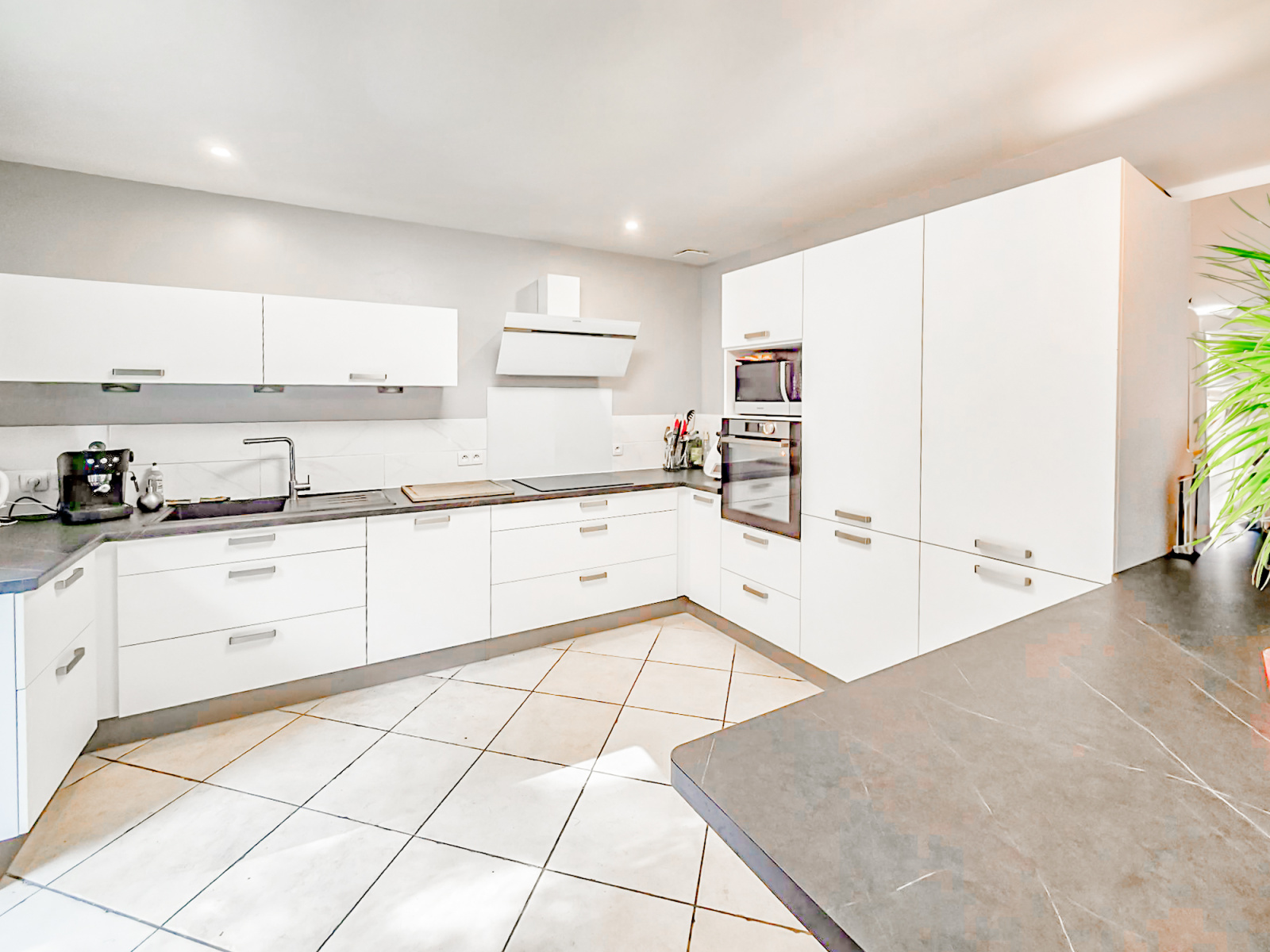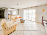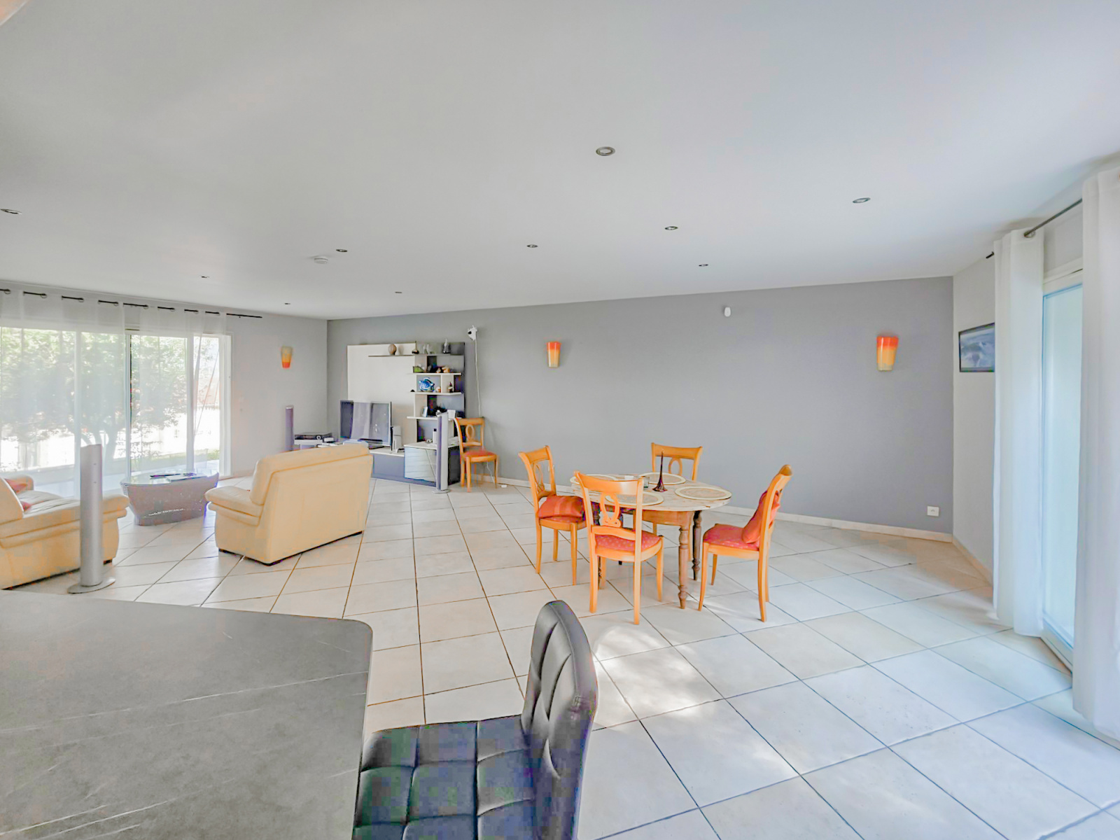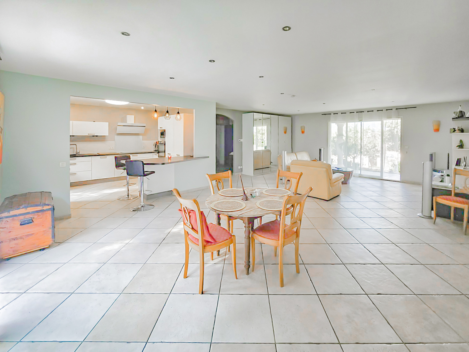 Une pièce à vivre de 63m2 avec cuisine américaine récente entièrement équipée, de grande baie vitrée s'ouvrant sur 2 grandes terrasses dont une avec vue sur le Pilat et la seconde sur le jardin paysagé de fleurs , d'oliviers avec un coin barbecue, four à pizza.....