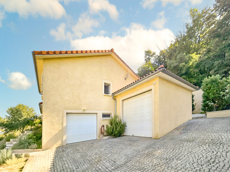 EN EXCLUSIVITE - Maison familiale d'environ 180 m2 sur un terrain de 800m2 située dans un quartier résidentiel calme et agréable agrémenté d'une cour pavée et de 2 garages de 35 m2 avec une belle hauteur et une grande porte automatisée + un 2ème de 33m2, à 18 mn de Vienne, 45 mn de Lyon et à 6 kms de la gare de St Clair du Rhône.