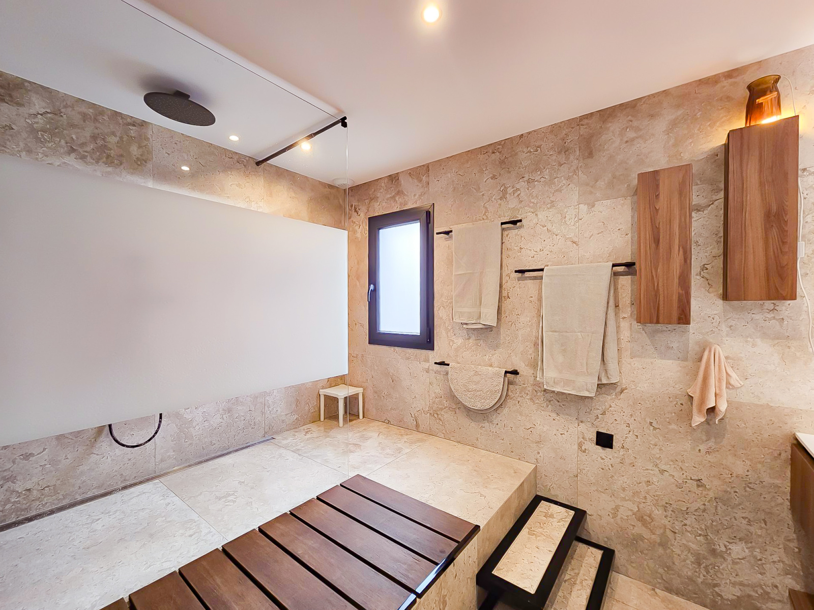 Elle offre 3 chambres de 11 + 14m2 et d'une suite parentale de 25m2 avec salle d'eau privée et dressing.